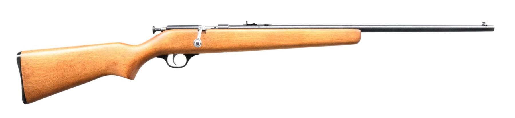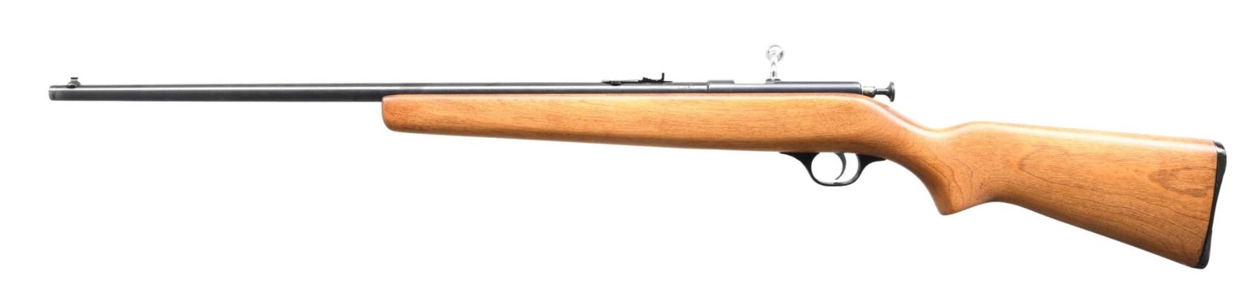 Cal. 22 S, L, and LR. NSN. Bbl. 24". Gold bead front sight. Sporting style rear sight. Single-shot bolt-action rimfire rifle. Blued finish. Hardwood stock. CONDITION: toe of stock shows some notable chips forming; stock otherwise shows some light scratches and handling marks. Metal retains 90% blue with some scattered light oxidation on the exposed edges. Action is a bit stiff but functional when hand-cycled. Bright, near excellent bore. (24-3827/MJC). CURIO. $50-100.