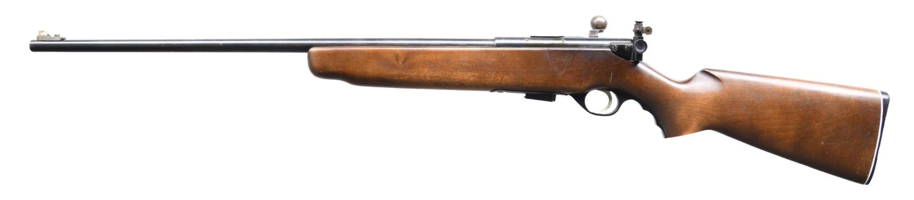 Cal. 22 S, L, LR. NSN. Bbl. 24". Replacement blade front sight, filler screws for rear sight, and Mossberg receiver sight. Hardwood stock. MAGS: one 7-rd. CONDITION: very good blue and wood finish. Missing sling attachments on stock. Shiny bore with strong rifling. (24-5886/MD). CURIO. $75-125.