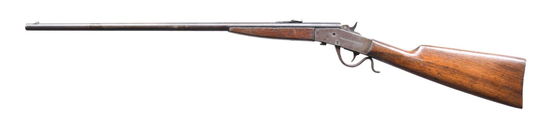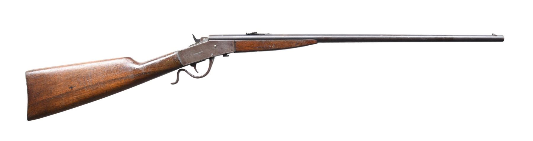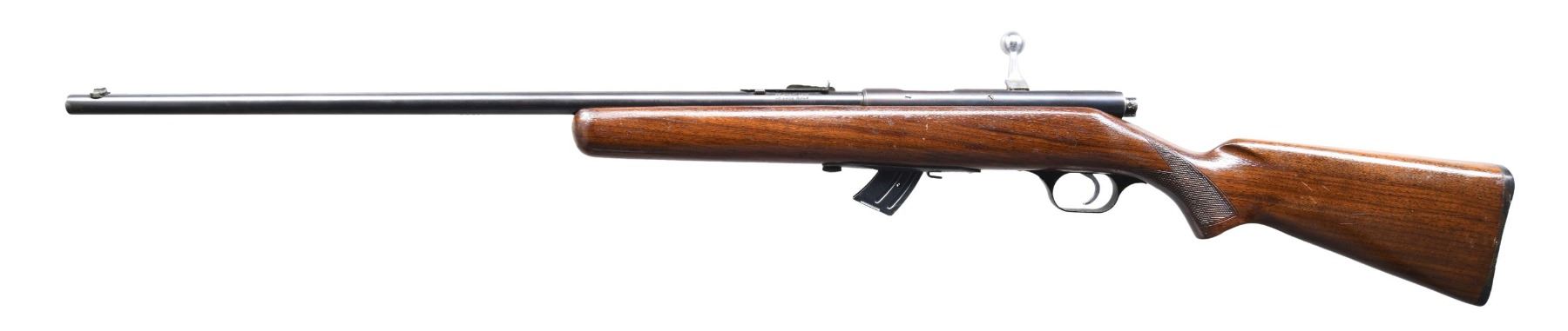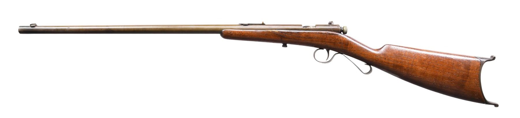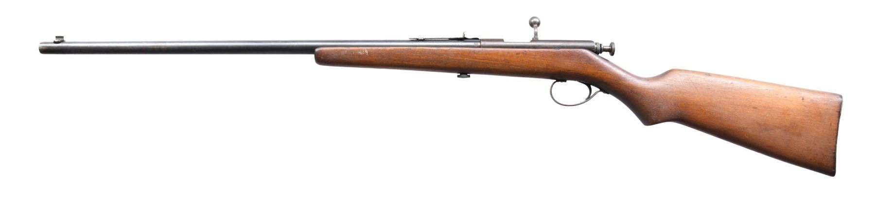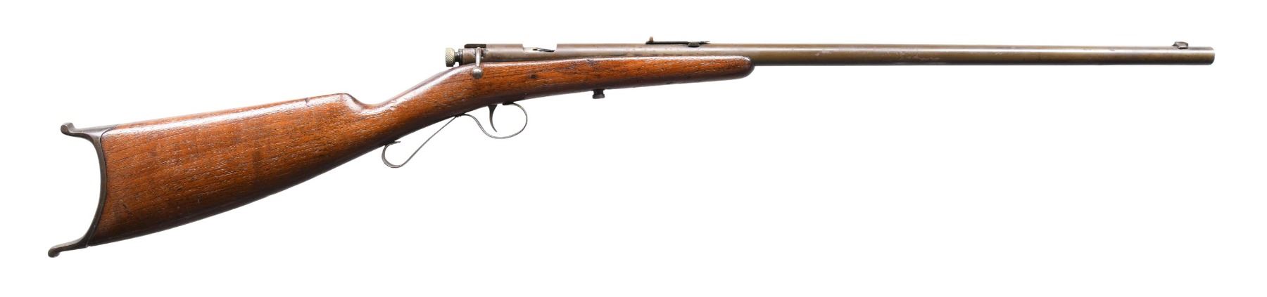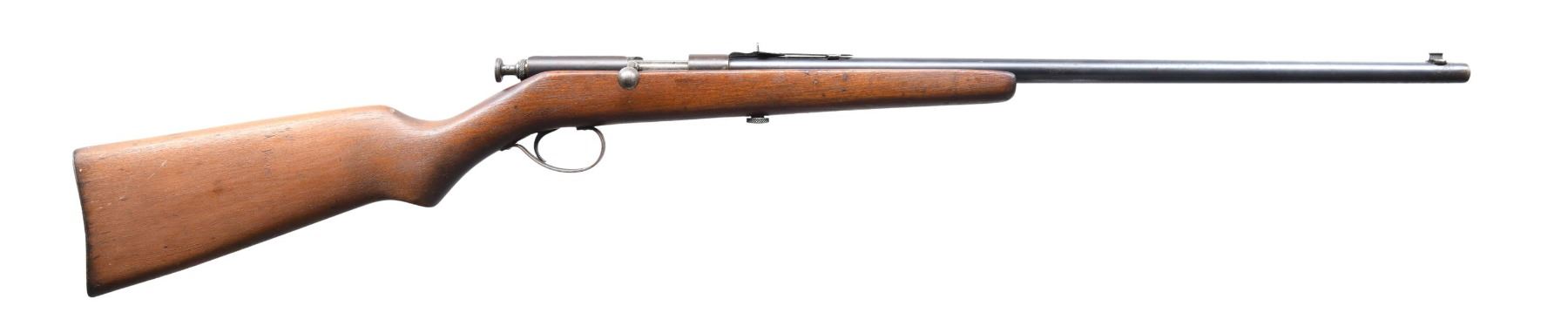 This lot consists of the following Savage rifles: 1) SAVAGE 1905 RIFLE. Cal. 22 S, L, LR. S# 28464. Bbl. 22". Blade front sight. Brass v-notch rear sight. Single shot bolt action rifle. Hardwood stock with Swiss style buttplate. CONDITION: stock appears sanded with added varnish with a couple large cracks on the left side, a few dings & scattered handling wear. Metal is a dull gray patina with scattered oxidation & dings. Action not going into battery when hand cycled & bolt maybe missing some small parts. Dark poor pitted bore. (24-5070/MJC). 2) SAVAGE 4C MODEL ACTION RIFLE. Cal. 22 S, L & LR. NSN. Bbl. 24". Blade front sight that appears to be missing a piece. Sporting style rear sight. Sporting style rear sight. Left side of receiver has two screw holes for sight mounting. Blued finish. Checkered walnut stock. MAGS: 1-10 rd. CONDITION: stock has added varnish with scattered flaking, dings & handling wear. Metal retains 50% original blue with scattered fading & oxidation. Action functions properly when hand cycled. Bright near excellent bore. (24-5076/MJC). 3) SAVAGE MODEL 3 BOLT ACTION RIFLE. Cal. 22 S, L & LR. NSN. Bbl. 22". Bead front sight. Sporting style rear sight. Single shot rimfire bolt action rifle. Blued finish. Hardwood pistol grip stock. CONDTION: stock has sanded appearance with scattered dings, handling marks & staining. Metal retains 50% blue with overall fading & scattered oxidation. Action appears to function when hand cycled. Bore has a bulge near front sight but otherwise has strong rifling. (24-5101/MJC). 4) SAVAGE MODEL B SHARPSHOOTER SINGLE SHOT RIFLE. Cal. 22 LR. NSN. Bbl. 24". Blade front sight. Sporting style rear sight. Falling block single shot rifle. Hardwood stock set. CONDITION: stock set shows the remnants of a flaked off varnish, a couple cracks behind action, scattered dings, chips, & handling marks. Metal is mostly a gray patina with scattered dings, oxidation & traces of blue. Action is loose but appears functional when hand cycled. Bore is mostly bright with strong rifling but a few pits. (24-5115/MJC). ALL CURIO. $425-675 for lot.