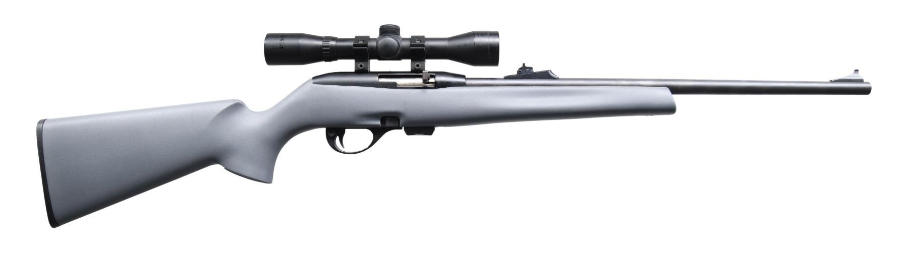 1) RUGER AMERICAN BOLT ACTION RIFLE. Cal. 22 LR. S# 832-06260. Bbl. 22". American bolt-action rifle mfg. by Ruger in 2014. Top of the bbl. is marked with Ruger's mfg. information, with the cal. designation marked on the left towards the breech. Left side of the receiver is marked with the S#, followed by the Ruger logo and "RUGER AMERICAN". Metal components exhibit a blue finish overall, save for the bolt body, which is polished in-the-white. Textured black synthetic pistol grip buttstock. Green fiber optic front sight, with flip-up U-notch rear sight. Receiver is mounted with a Simmons 4x32 22 MAG scope. MAGS: one 10-rd. CONDITION: very good, with metal components retaining the majority of their original factory finishes, exhibiting a few superficial handling marks, with a small area of surface oxidation present over the top of the receiver. Mirror bore, retaining well-defined rifling throughout. Stock is very good overall. Scope retains a clear and sharp optic. (24-5948/MLW). 2) REMINGTON MODEL 597 SEMI-AUTOMATIC RIFLE. Cal. 22 LR. S# A2707370. Bbl. 20 1/8". Model 597 semi-automatic rifle mfg. by Remington. Top of the bbl. is marked with Remington's mfg. information, followed by the cal. designation. Left side of the receiver is marked with the S#, followed by the Remington trademark logo above "MODEL 597." Aluminum receiver exhibits a black enamel type finish, with the bbl. exhibiting a matte blue finish. Plain gray synthetic pistol grip buttstock with black plastic trigger guard. Ramped blade front sight, with U-notch rear sight. Receiver is mounted with a BSA .22 Special 4x32 scope. MAGS: one 10-rd. CONDITION: metal components retain the vast majority of their original factory finishes, with the bbl. exhibiting a few light spots of surface oxidation overall. Mirror bore, exhibiting well-defined rifling throughout. Stock shows a few light superficial handling marks but otherwise remains sturdy and serviceable. Scope is slightly hazy, but otherwise is good. (24-5949/MLW). 3) SAVAGE MARK II BOLT ACTION RIFLE. Cal. 22 LR. S# 1514071. Bbl. 21". Mark II bolt-action rifle mfg. by in Canada by Savage and imported by Savage Arms Inc. Left side of the bbl. exhibits markings stipulating the model and cal. designations, above Savage's mfg. and importer information. Metal components exhibit a blue finish overall. Checkered black synthetic pistol grip buttstock. Globe front sight, with Williams adj. aperture rear sight. Receiver is factory drilled and tapped, with screws being absent. MAGS: one 5-rd. CONDITION: excellent, with metal components retaining the majority of their original blue finish, exhibiting a few light superficial handling marks overall. Mirror bore, exhibiting well-defined rifling throughout. Stock shows a few light superficial marks from handling and storage but otherwise remains sturdy and serviceable. (24-5950/MLW). ALL MODERN. $300-500.