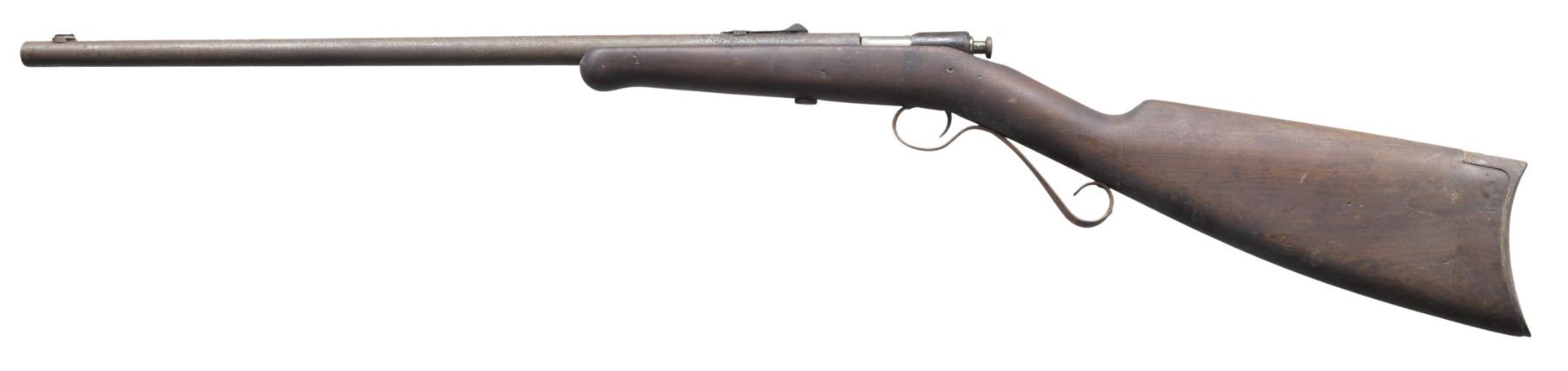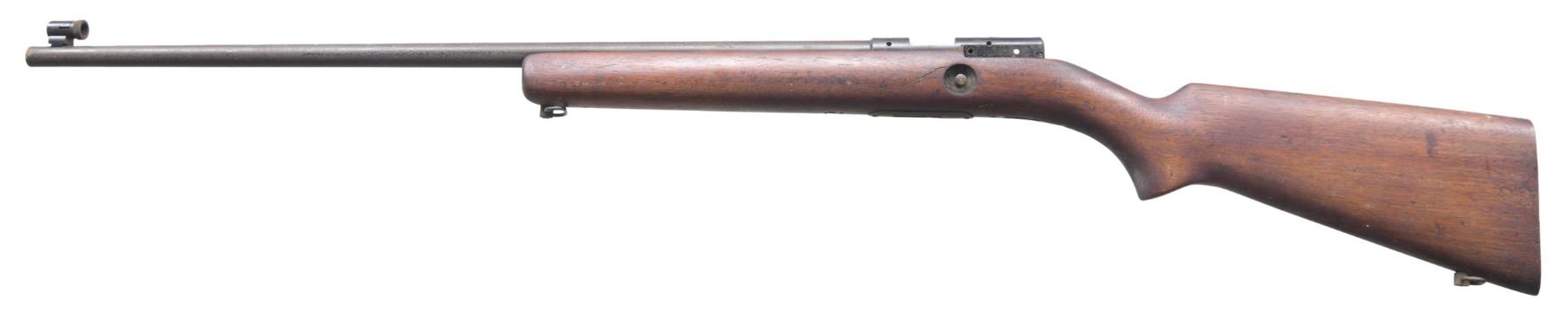 1) WINCHESTER MODEL 04 SINGLE SHOT BOLT ACTION RIFLE. Cal. 22 S, L, EL. NSN. Bbl. 21". Model 04 single shot bolt action rifle mfg. by Winchester. Standard markings. Metal components exhibit a blue finish. Plain wood buttstock. Blade front sight, with U-notch rear sight. CONDITION: metal components retain traces of their original finish, exhibiting wear and thinning that shows through to gray patina, with surface oxidation present overall. Bright bore, exhibiting some pitting, while retaining strong rifling throughout. Stock shows scattered marks from handling and storage, but otherwise remains sturdy and serviceable. (24-4892/MLW). 2) WINCHESTER MODEL 1904 SINGLE SHOT BOLT ACTION RIFLE. Cal. 22 S, L, EL. NSN. Bbl. 21". Model 1904 single shot bolt action rifle mfg. by Winchester. Standard markings. Metal components exhibit a blue finish. Plain wood straight grip buttstock. White beaded blade front sight, with U-notch rear sight. CONDITION: metal components retain traces of their original blue finish, with the balance exhibiting a gray patina and oxidation overall. Bright bore, exhibiting scattered areas of dark pitting, while retaining good rifling throughout. Stock exhibits scattered marks and minor impressions from handling and storage, but otherwise remains sturdy and serviceable. (24-4910/MLW). 3) WINCHESTER MODEL 1904 SINGLE SHOT BOLT ACTION RIFLE. Cal. 22 S & L. NSN. Bbl. 21". Model 1904 single shot bolt action rifle mfg. by Winchester. Standard markings. Metal components exhibit a blue finish overall. Plain wood straight grip buttstock. Blade front sight, with U-notch rear sight. CONDITION: metal components retain fair amounts of their original blue finish, exhibiting wear and thinning that shows through to gray patina, with oxidation present overall. Dark pitted bore, retaining poor rifling throughout. Stock exhibits scattered marks and impressions from handling and storage, with a crack on the left side stemming from the forearm tip. (24-4912/MLW). 4) WINCHESTER MODEL 72 BOLT ACTION RIFLE. Model 72 bolt action rifle mfg. by Winchester. Standard markings. Metal components exhibit a blue finish overall. Plain wood pistol grip buttstock. Blade front sight (tip damaged), with Lyman adj. aperture rear sight. Bolt assembly, trigger guard, and mag. tube are absent. CONDITION: metal components retain large amounts of their original blue finish, exhibiting wear and thinning, with light to mild surface oxidation overall. Bright bore, exhibiting strong rifling throughout. Stock exhibits some scattered handling marks, with the butt exhibiting losses to the finish and drying. (24-4917/MLW). 5) WINCHESTER MODEL 69A BOLT ACTION RIFLE. Cal. 22 S, L, LR. NSN. Bbl. 25 1/8". Model 69A bolt action rifle mfg. by Winchester. Standard markings. Metal components exhibit a blue finish overall. Plain wood pistol grip buttstock, globe front sight (sight post is absent). Rear sight assembly, bolt assembly, trigger assembly, and mag. are absent. CONDITION: metal components retain fair amounts of their original blue finish, exhibiting oxidation overall. Very bright bore, exhibiting a couple of rings and/or bulges, while retaining strong rifling throughout. stock exhibits scattered marks from handling and storage, but otherwise remains sturdy and serviceable. (24-4892/MLW). ALL CURIO. $275-275.