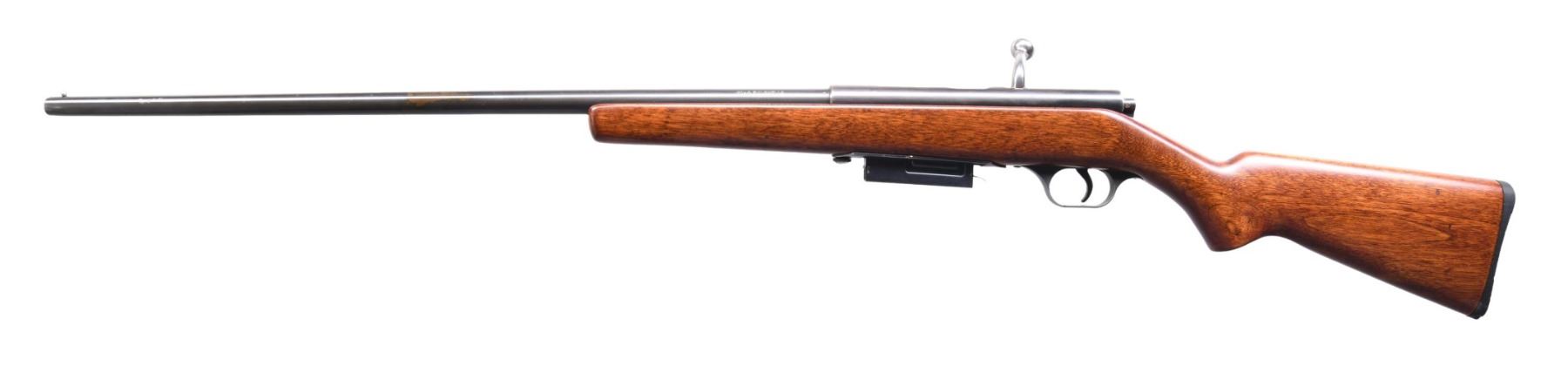 This lot consists of the following shotguns: 1) STEVENS MODEL 38A BOLT ACTION SHOTGUN. Cal. 410 3". NSN. Bbl. 24". Silver bead front sight. Mag fed shotgun. Rear mag well screw is missing. Blued finish. Walnut pistol grip stock. MAGS: 1-2 rd. detachable. CONDITION: refinished stock has added varnish with some handling marks. Buttplate shows a couple chips. Metal is turning gray with strong amounts of blue, some areas turning brown, edge wear & a few specks of oxidation. Action functions properly when hand cycled. Bright very good plus bore. (24-5060/MJC). 2) STEVENS MODEL 59A BOLT ACTION SHOTGUN. Cal. 410 3". NSN. Bbl. 24". Silver bead front sight. Tube fed shotgun. Blued finish. Hardwood pistol grip stock. CONDITION: stock shows scattered flaking varnish & some handling marks. Metal is turning to a gray patina with scattered pitting, oxidiation & traces of blue. Action appears sluggish but functional when hand cycled. Very good bright bore. (24-5061/MJC). BOTH CURIO. $250-350 for lot.