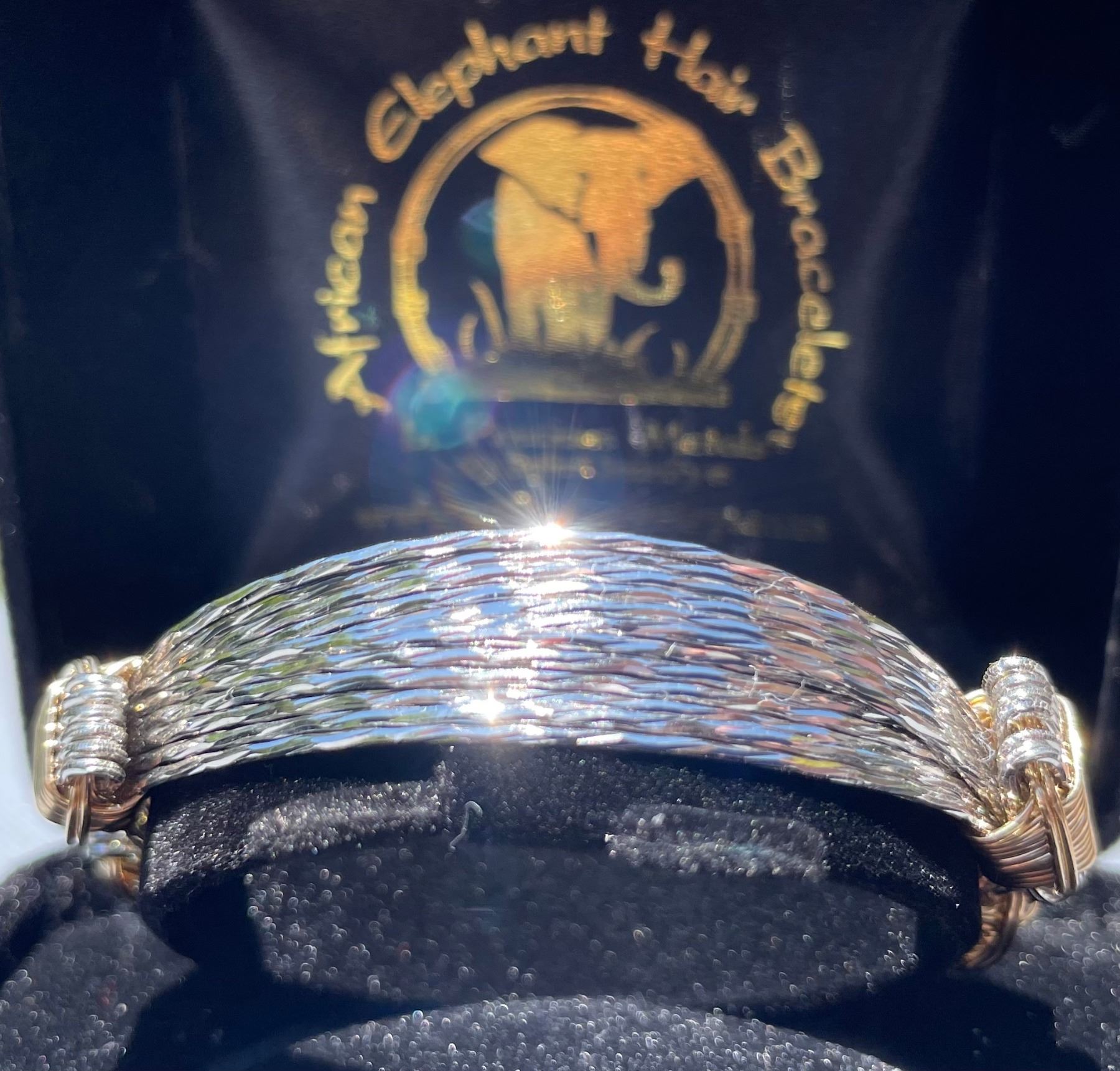 Crafted with utmost precision, this bracelet features strands of 16-gauge round diamond cut sterling silver wire. The intricate knots are adorned with contrasting 14K gold fill, adding a touch of elegance to the overall design. What sets this bracelet apart from our other products is its uniquely round wire that's diamond-cut to capture and reflect light from all angles. When you wear it, the bracelet sparkles like a thousand diamonds and when sunlight hits it, it creates an enchanting aura that's hard to ignore. Each piece of African Elephant Hair Bracelet - Safari Jewelry piece is handmade and hand signed - look for the maker's mark to ensure original quality. David Anderson, 805-685-5955, 805-452-5792, PO Box 61605, Santa Barbara, CA 93160, d.sb@verizon.net, SafariJewelry.Com, BOOTH #2217.