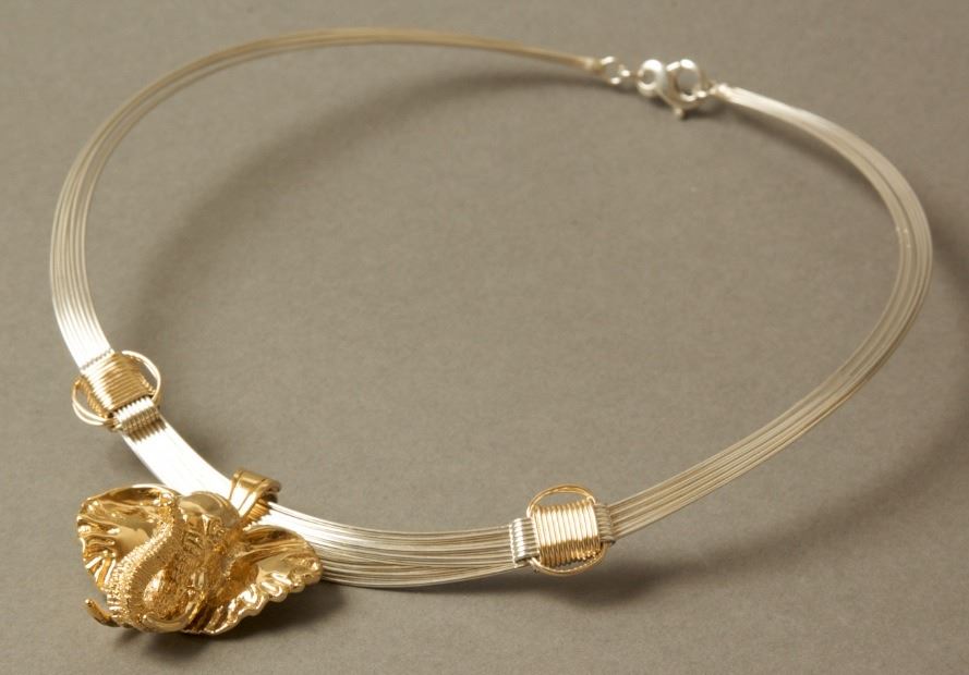 The body of our two tone necklace is made up of multiple strands of 16 gauge sterling silver wire. The knots are made of contrasting 14k gold fill and are designed to slide making the necklace adjustable. It comes with our most popular pendant. This gold elephant head has a solid .925 sterling silver base metal with a 14k gold vermeil overlay. Gold vermeil is much higher quality than traditional gold plated jewelry and makes a wonderful alternative to solid 14k gold. Each piece of African Elephant Hair Bracelet - Safari Jewelry piece is handmade and hand signed...look for the maker's mark to ensure original quality! David Anderson, 805-685-5955, 805-452-5792, PO Box 61605, Santa Barbara, CA 93160, d.sb@verizon.net, SafariJewelry.Com, BOOTH #2217.