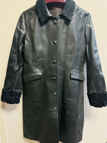 Lot 129 ALAN MICHAEL: Italian Steer Pebble Leather Coat with English Curly Lamb Trim