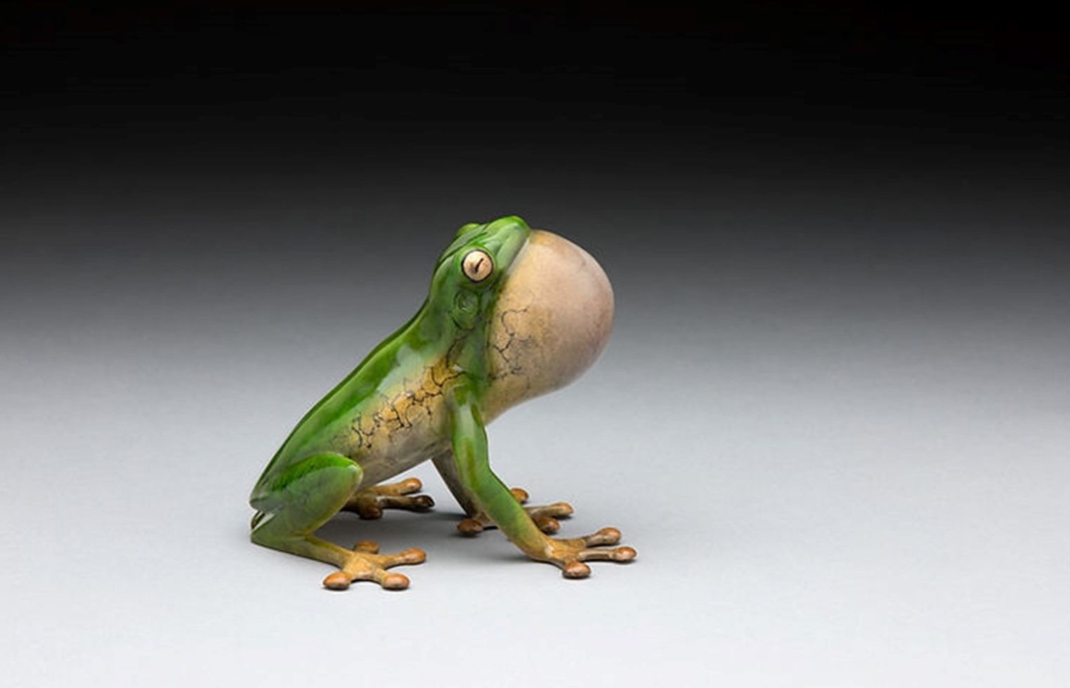 "Love Song" - Sweet little frog bronze sculpture by Joshua Tobey, measures 3.5"Hx4.5"x4.5"D. DALLAS SAFARI CLUB THANKS JOSHUA TOBEY STUDIOS FOR THIS 100% DONATION. Jojo Tobey, 361-688-7766, 970-663-0973, 18245 W. County Rd., 18 E, Loveland, CO 80537, joshuatobeystudios@yahoo.com, JoshuaTobeyStudios.Com, BOOTH #2023.
