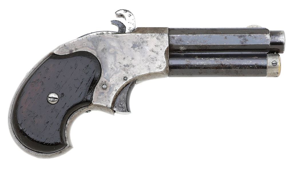 32 RF Extra Short, 3 1/4'' barrel with a bright near excellent bore showing a few small areas of mild oxidation and crisp rifling throughout. This is a nice example of the more desirable blued and case-hardened variant without embellishments. The barrel and magazine tube retain perhaps 65-70% original bright blue with overall flaking to pleasant gray-brown patina and some areas of light pinprick pitting mostly along the left side. The trigger and hammer retain fine bright blue as well and the breechblock is nickel-plated retaining about 90% finish showing light flaking. The barrel address and patent date remain crisp and the frame retains about 75-80% nice vibrant case-hardened colors showing some scattered light oxidation staining and some pinprick pitting along the left side. The smooth rosewood grips remain in near excellent condition with strong original varnish and scattered light edge wear. The action seems to function well mechanically. This is a fine example of an interesting and desirable Remington pistol. (13C11777-29) {ANTIQUE} (2000/3000)