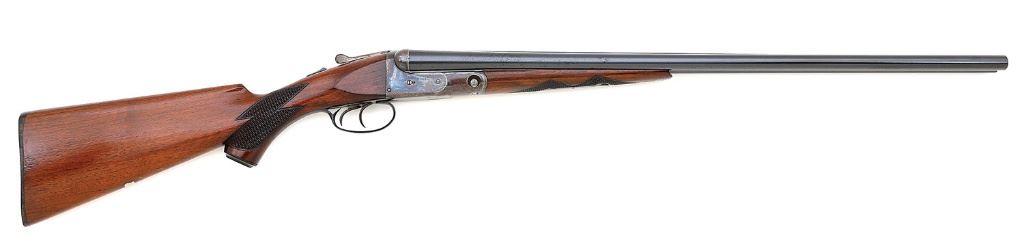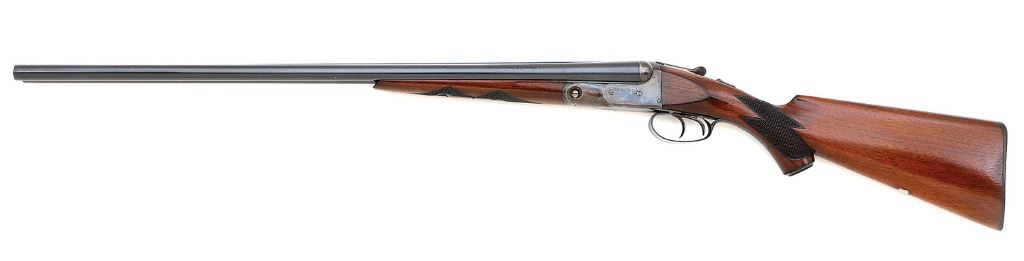 serial #208715, 20 ga (2 1/2'') on 0 frame, 26'' Vulcan steel barrels choked improved modified and full with bright excellent bores. The barrels of this very attractive 1924-made shotgun retain about 92% original blue with most of the loss due to some light surface oxidation along the sides of the barrels nearer the breech, some more mild scattered freckling and light handling marks. The action retains about 75% lovely original vibrant case-hardened colors, the loss due to scattered areas of old oxidation staining with patches toning to a pleasant gray-brown patina and the triggerguard retains fine bright blue in the protected areas with the exterior flaking to mild gray-brown. All markings remain crisp showing the simple zigzag borders. The checkered capped pistolgrip walnut buttstock and forend remain in excellent condition retaining about 95% original finish and showing just a few sparsely scattered light dings and handling marks. Stock fit is excellent and the checkering remains crisp throughout, the original hard rubber pistolgrip cap and widows peak buttplate also rate excellent. Length-of-pull is 14 1/4'' with drops of 1 1/2'' and 2 3/4''. Weight is 6 lbs., the gun is sighted with a single silver bead and the gun features double triggers, extractor and automatic safety. The barrels lock-up solid on-face with top lever still well right-of-center and the action seems to function well mechanically. A lovely 20 gauge VH that appears to have seen very little actual use. (13C11697-1) {C&R} (4000/5000)