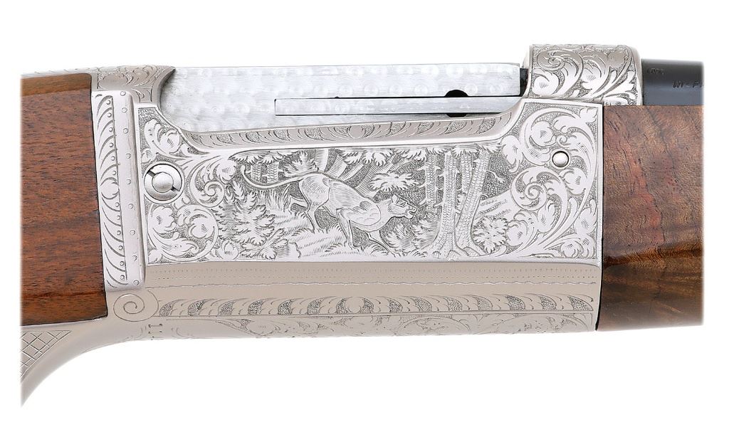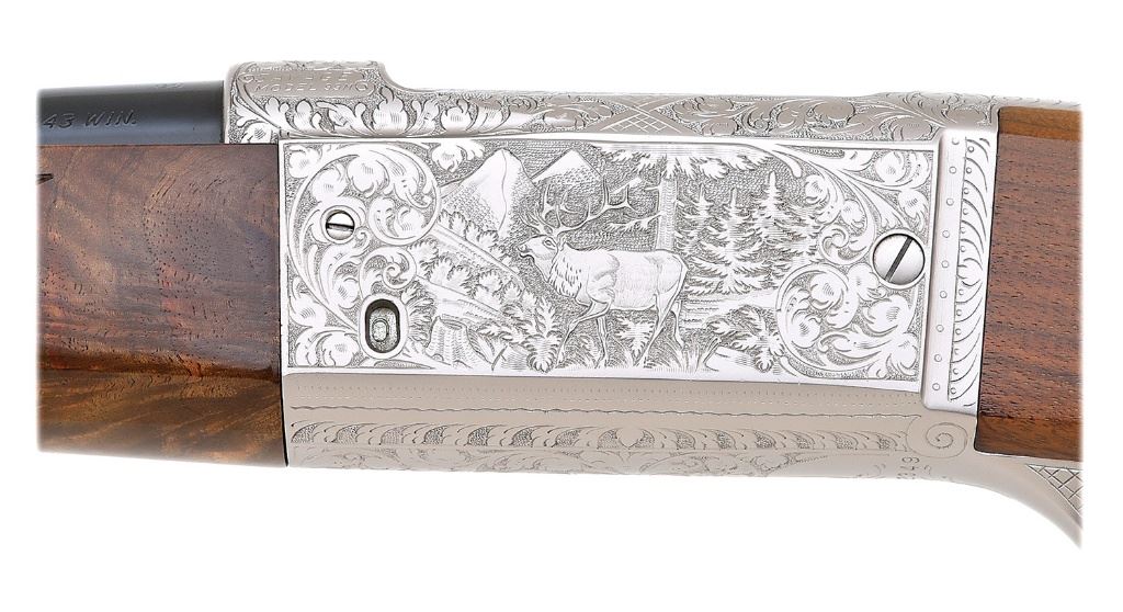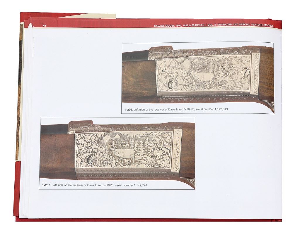 serial #1142349, 243 Win, 22" round barrel with a bright excellent bore. This 1967 production rifle features lovely relief floral scroll factory engraving with a cougar in forest scene right and bull elk in wooded mountainous scene on left. Rifle is in typical configuration with monte carlo stock, jeweled bolt and gold washed trigger and tang safety. The barrel retains 99% original blue finish and the action retains all of its even satin gray finish with very crisp engraving. The cut checkered pistolgrip buttstock and forend are of highly figured American black walnut with black plastic grip cap and aluminum buttplate. The stocks retain 99% original finish overall and you have to hunt to find a handling mark. This rifle is illustrated on page 78 of David Royals Savage Book, Volume 2. A near new Savage 99 PE certain to please even the fussiest of collectors. (1C11759-20) {C&R} (4000/6000)