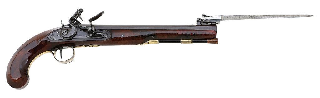Lot 134 British Snap Bayonet Flintlock Pistol by Redfern