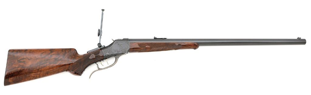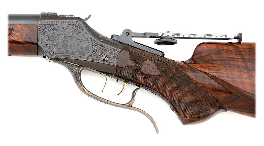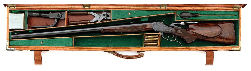 Lot 182 Fine Custom Engraved Winchester Model 1885 High Wall Express Rifle with Huey Gun Case