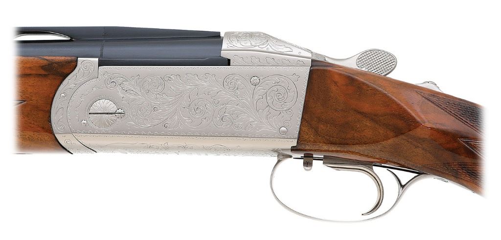 serial #24604, 12 ga (3”), 28” Bohler-Laufstahl screw-choked barrels with bright excellent bores. The barrels retain about 99% excellent factory restored blue showing perhaps a minor handling mark or two. The silver finished receiver is in excellent condition displaying crisp factory open foliate scroll engraving providing about 80% coverage, with neat bordering, a floral motif on the hinge pin, and the underside of the frame maker-marked within a shield. The checkered pistolgrip Monte Carlo-style deluxe walnut stock and forend are in excellent condition with only some tiny flakes of finish along the upper tang and a small handful of easily missed light handling marks. Both stock and forend exhibit beautiful grain figure and the stock features a palm swell and a solid Kick-Eez recoil pad giving a 14” length of pull. The shotgun locks up tight with the lever coming to rest well right of center and features a single selective trigger, nonautomatic safety, mechanical hammers, robust ejectors, and is sighted with a white Bradley-style bead front and small brass bead midrib. Included with the shotgun and making quite the well-rounded package are three sets of Kolar sub-gauge inserts for 20 ga, 28 ga, and 410 bore, all with excellent bores but showing wad residue from use, retaining their factory labels and marked for either the top or bottom barrel, six Kolar chokes for gauge insert with the constriction and either “o” or “u” scratch marked on them, appropriate choke wrenches for each, six chokes for the 12 ga barrels (three marked “0”, two marked "1”, and one marked "2”), a pair of snapcaps, a small mallet, and manuals from both Krieghoff and Kolar. All are housed within an aluminum hardcase, a pair of Krieghoff and Kolar stickers adorning the exterior of the lid, the interior an attractive emerald green showing a small spot of wear with compartments for the shotgun, sub gauge inserts, and accessories. The shotgun is essentially as-new with a replacement cost well north of $20k. A fine ensemble for the sporting shotgunner. (14D11765-3) {MODERN} (12,000/15,000)