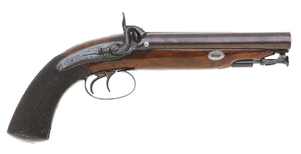 Lot 282 Fine & Desirable British Double Barrel Percussion Howdah Pistol by Henry Tatham