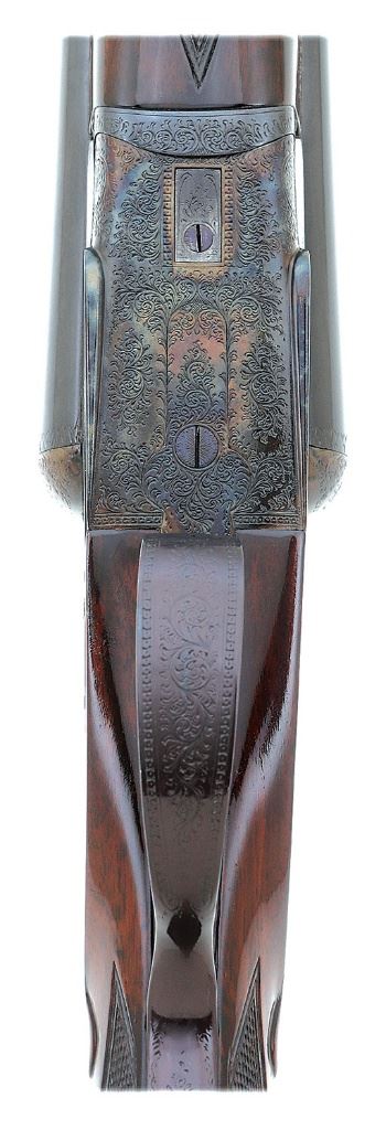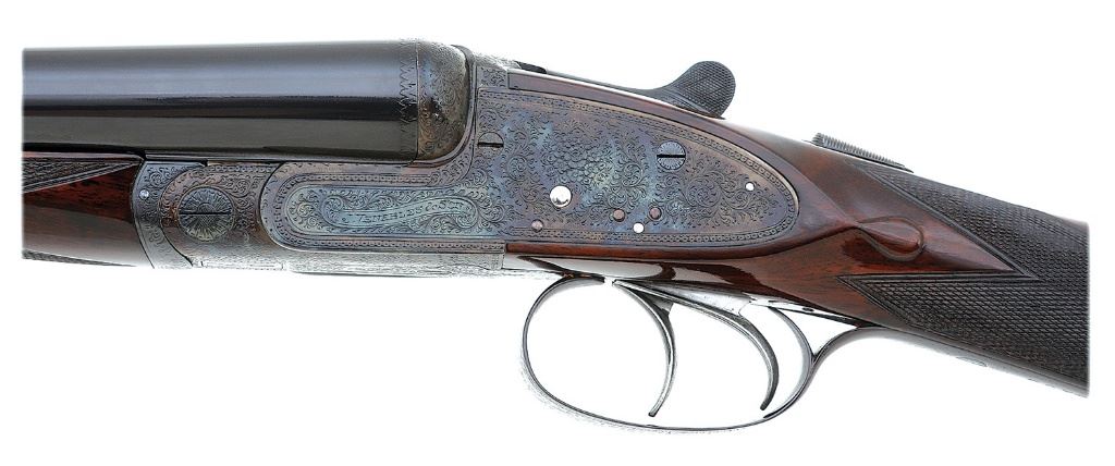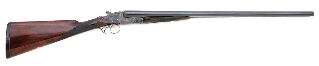 serial #5836, 12 ga., 28" barrels choked improved cylinder and improved modified and with bright excellent bores. This shotgun was made in Oxford which is located between London and Birmingham and was proofed in Birmingham. Originally proofed with 2 1/2" chambers for a 1 1/8 oz. load, the gun shows modern proofs showing the chambers at 70mm (2 3/4") and pressures at 850 BAR. The action and locks show full coverage, very nicely executed, rose and scroll engraving with makers name "J. VENABLES & SON" in riband on either side. The top rib is engraved "J. VENABLES & SON ST. ALDATES, OXFORD" and the barrel, forend and top lever are all engraved with the numeral "1" indicating that this was originally part of a set. The gun is overall about as-new and appears to be a full London refinish. The barrels show a minimum wall thickness of about .026" with most areas measuring at .030" or higher. The gun weighs a tad under 6 1/2 lbs. and points nicely with a 14 7/8" length of pull over a thin leather covered recoil pad and having drops of 1 1/2" and 2". The section of the under rib closest to the action is Connecticut Shotgun importer marked. The ejectors are robust and in-time and the gun locks up tight and on-face. This double is ready to go afield. (1C11778-13) {C&R} (4000/6000)