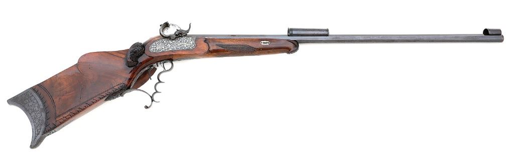 Lot 367 Austrian Reverse Lock Percussion Schuetzen Rifle by Ignaz Fischer