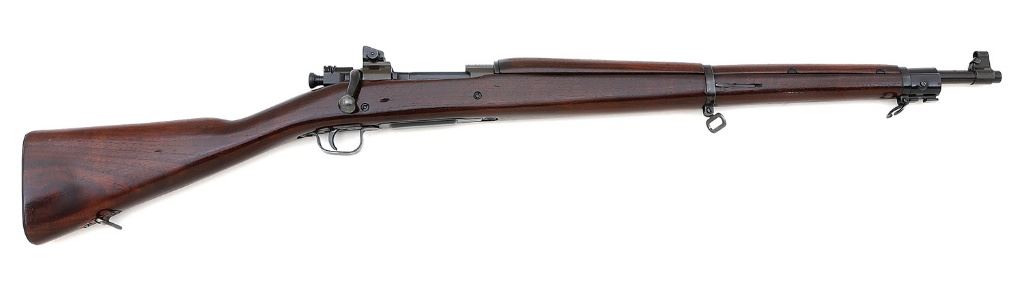 serial #4058690, 30-06, 24'' 9-43 dated Remington Arms barrel with a bright excellent bore. The barreled action retains about 98% original parkerized finish with a few scattered specks of fine oxidation staining and light handling marks, and small parts retains perhaps 95% original blue with light handling marks, spots of fine oxidation staining, and high edge wear. All marked parts have the correct ''R'' marking and the barrel and receiver markings remain crisp. The straight grip walnut stock and handguard are in near excellent condition with some expected light handling marks and a crisp circled ''P'' behind the triggerguard, and partially legible squared ''FJA'' inspectors mark along the left side. The rifle is sighted with standard open sights and the front sight cover is intact. (10A11782-1) {C&R} (800/1200)
