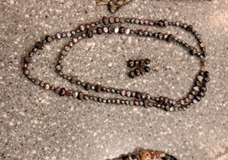 Lot 2 Hand-beaded, Double Strand Black Pear Necklace and Earring Set