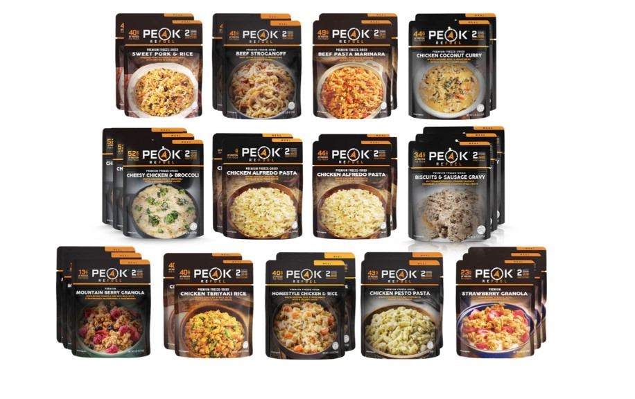 Peak Refuel is loaded with the protein your body needs to sustain or recover from a long day on the trail. Our meals have nearly double the amount of protein per serving than most outdoor meals on the market. Everyone we source ingredients from goes through an extensive screening process before we choose to do business with them. Rest assured you're getting the highest quality, non-GMO ingredients when you choose Peak Refuel. The winner of this lot will receive the Wasatch Pack - HIGH PROTEIN | 100% REAL MEAT | PREMIUM INGREDIENTS - (3- Creamy Chicken Broccoli, 3 - Biscuits & Sausage Gravy, 2 - Homestyle Chicken & Rice, 2 - Beef Stroganoff, 4 - Chicken Alfredo, 2 - Chicken Coconut Curry, 2 - Beef Pasta Marinara , 2 - Chicken Pesto Pasta, 2 - Sweet Pork and Rice, 2 - Chicken Teriyaki, 3 - Strawberry Granola, 3 - Mt Berry Granola) {30 Total}