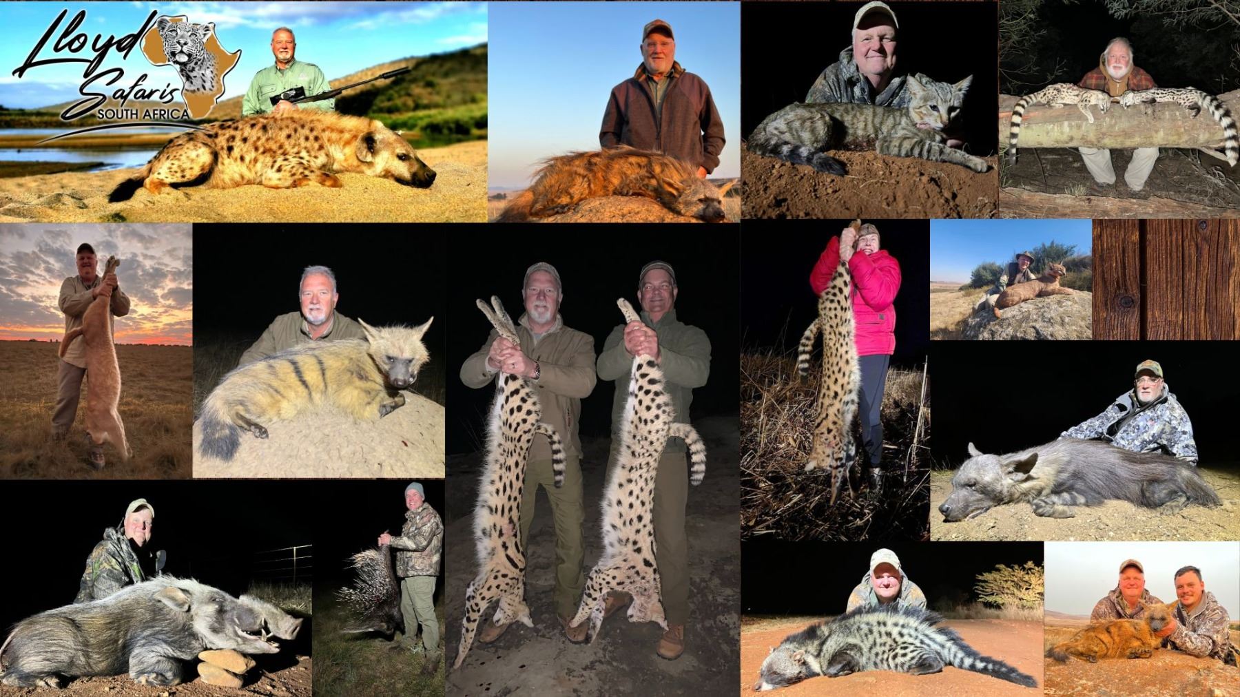 Lloyd Safaris invites you to a 5-day Night Critter Hunt in South Africa, designed for one hunter and one non-hunter. This thrilling adventure includes the pursuit of a Serval, Caracal, African Wildcat, White-tailed Mongoose, Brown Water Mongoose, and Genet in the picturesque region of Ermelo, Mpumalanga. The hunt will take place on one of our stunning farms, where you will encounter diverse landscapes, including beautiful mountains and wetlands that are home to various game species such as Blesbuck, Red Hartebeest, Springbuck, Fallow Deer, Gemsbuck, and more, all roaming freely in their natural habitat. Your stay at our hunting lodge offers the perfect blend of adventure and relaxation, providing 4-star luxury accommodations designed for those who appreciate nature but also desire comfort. The lodge features eight fully equipped en-suite rooms, each with a private patio, DSTV, in-room Wi-Fi, desk, hairdryer, kettle with tea and coffee, and a safe. Hunting in Mpumalanga promises not only top-quality trophies but also breathtaking scenery. At Lloyd Safaris, we are committed to delivering an authentic African adventure, allowing you to experience the continent on foot and return home with unforgettable memories. Additional hunters are welcome at $320/night and non-hunters at $180/night. Hunt can be taken in 2025 or 2026. Upgrades are available per current price list. HSCF thanks Lloyd Safaris for this 100% donation.