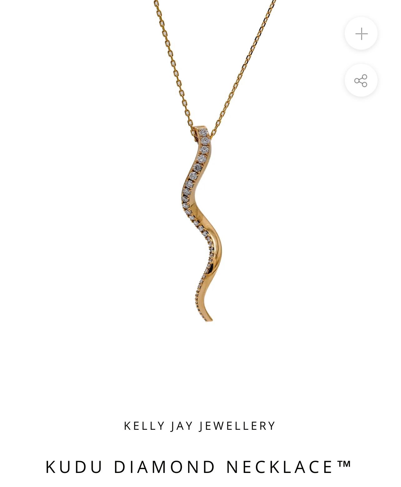 Inspired by the majestic Kudu of Africa, this necklace captures the elegance and grace of the animal's iconic horns. Crafted in 18k yellow gold, it is a symbol of sophistication and individuality, ideal for the discerning woman. The necklace, weighing approximately 6.6 grams, features a pendant encrusted with natural diamonds, making it a striking statement piece. The pendant hangs on a beautiful 50cm long 18k yellow gold chain. This unique design, now trademarked, ensures that the wearer will stand out with timeless style. HSCF thanks Kelly Jay Jewellery for this 100% donation.