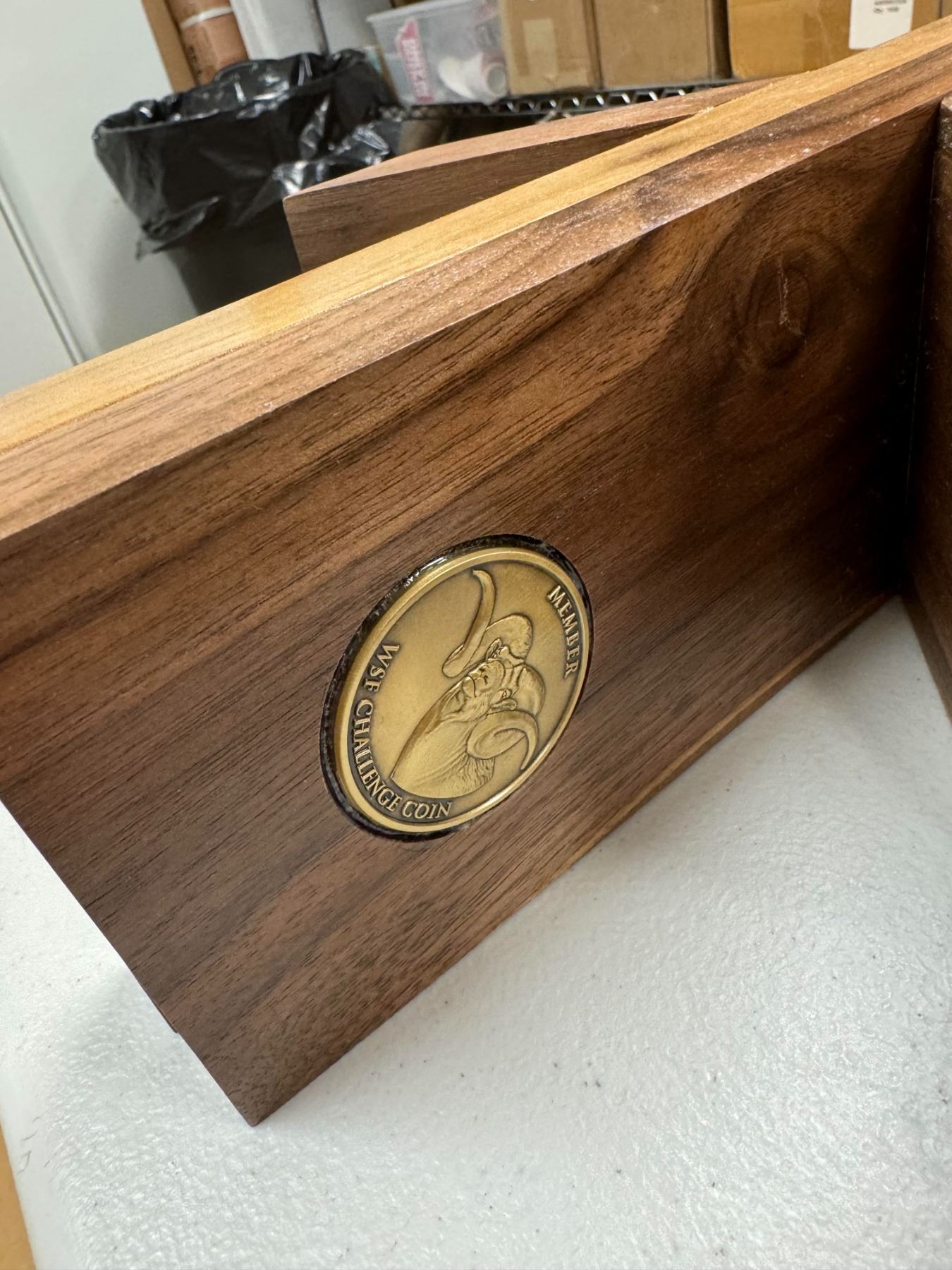 CUSTOM HORN CRADLE W/WSF MEMBER CHALLENGE COIN