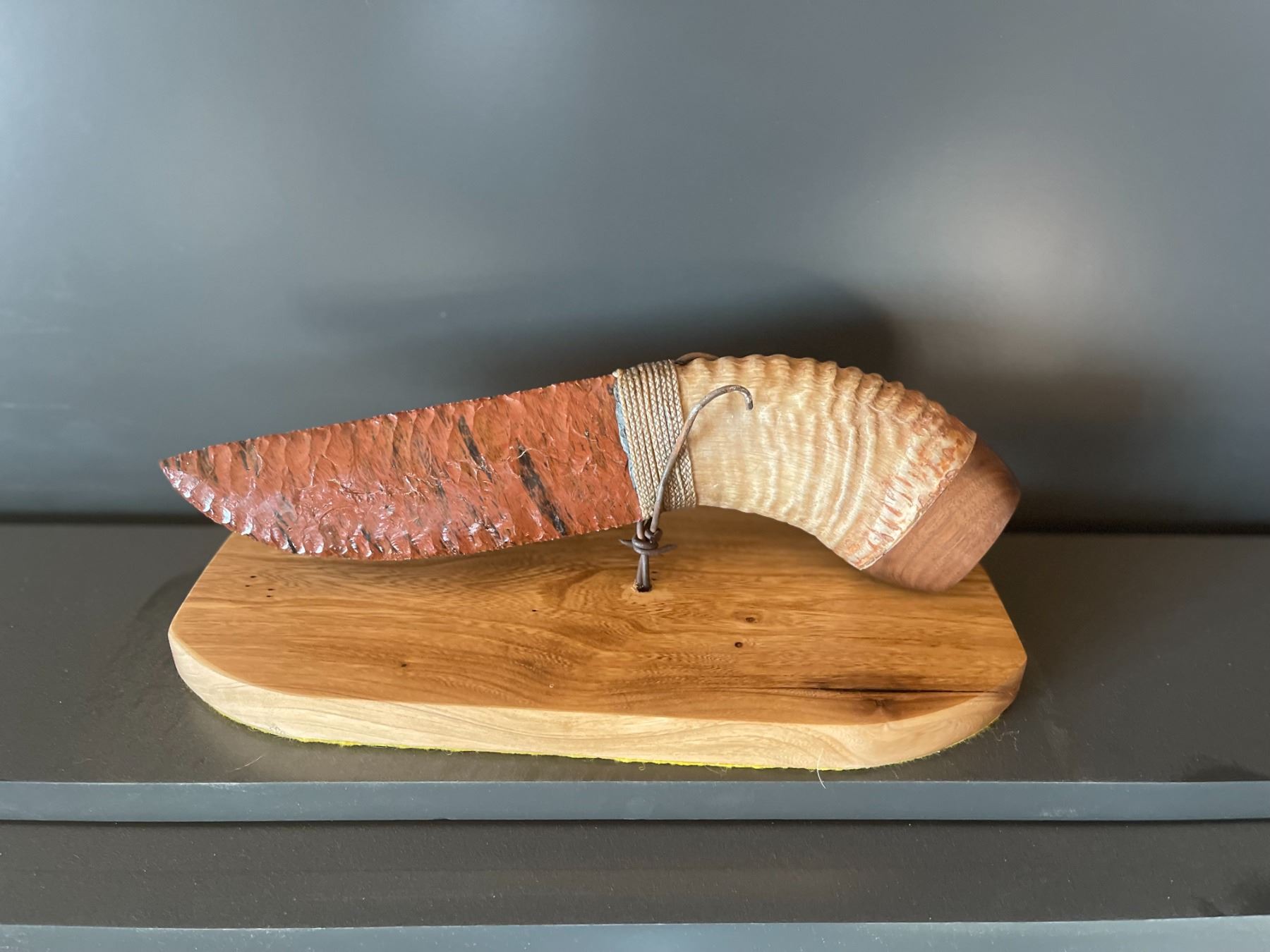 Flintknapped Knife with Ram's Horn Handle