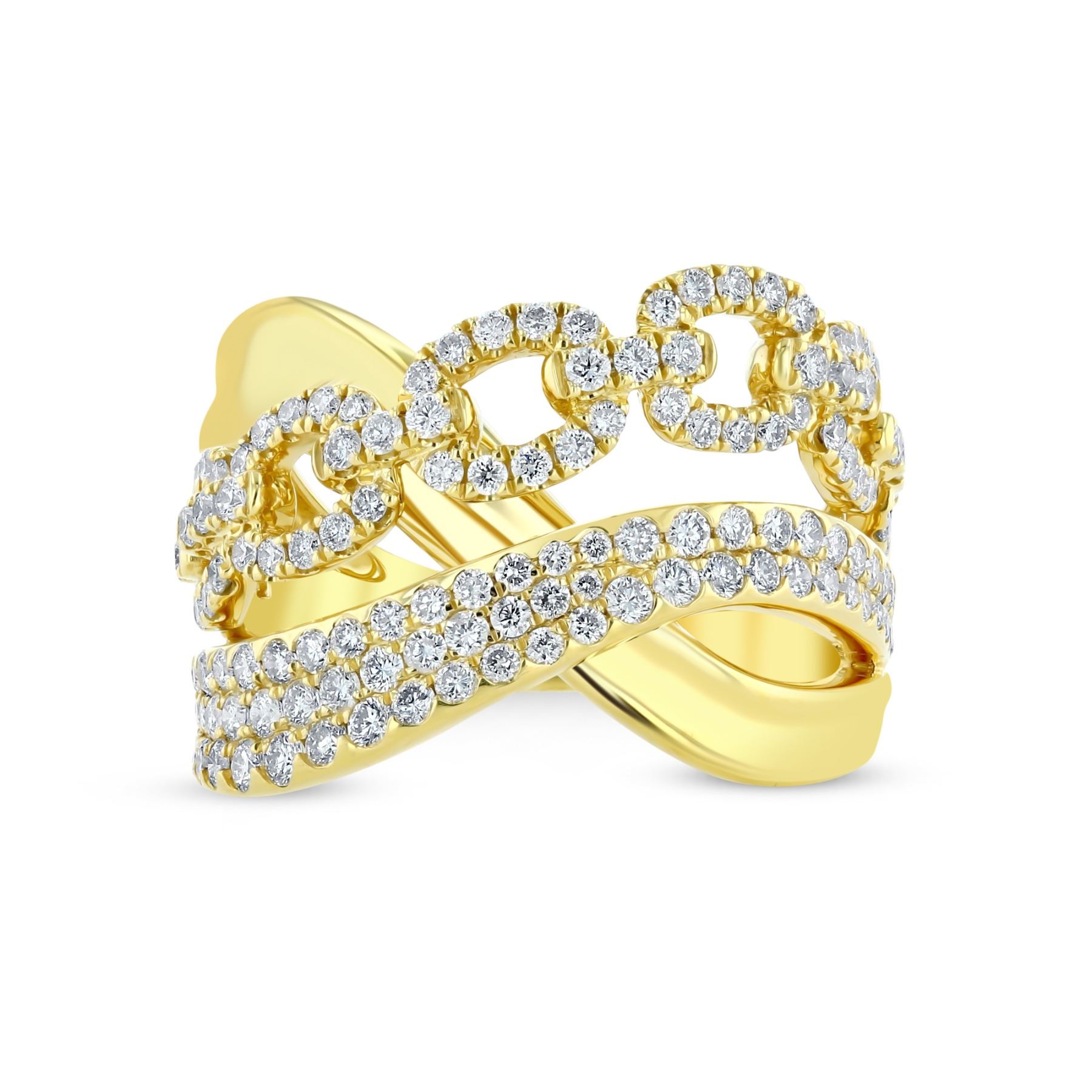 One of a kind natural white diamond ring set in 14 karat yellow gold.