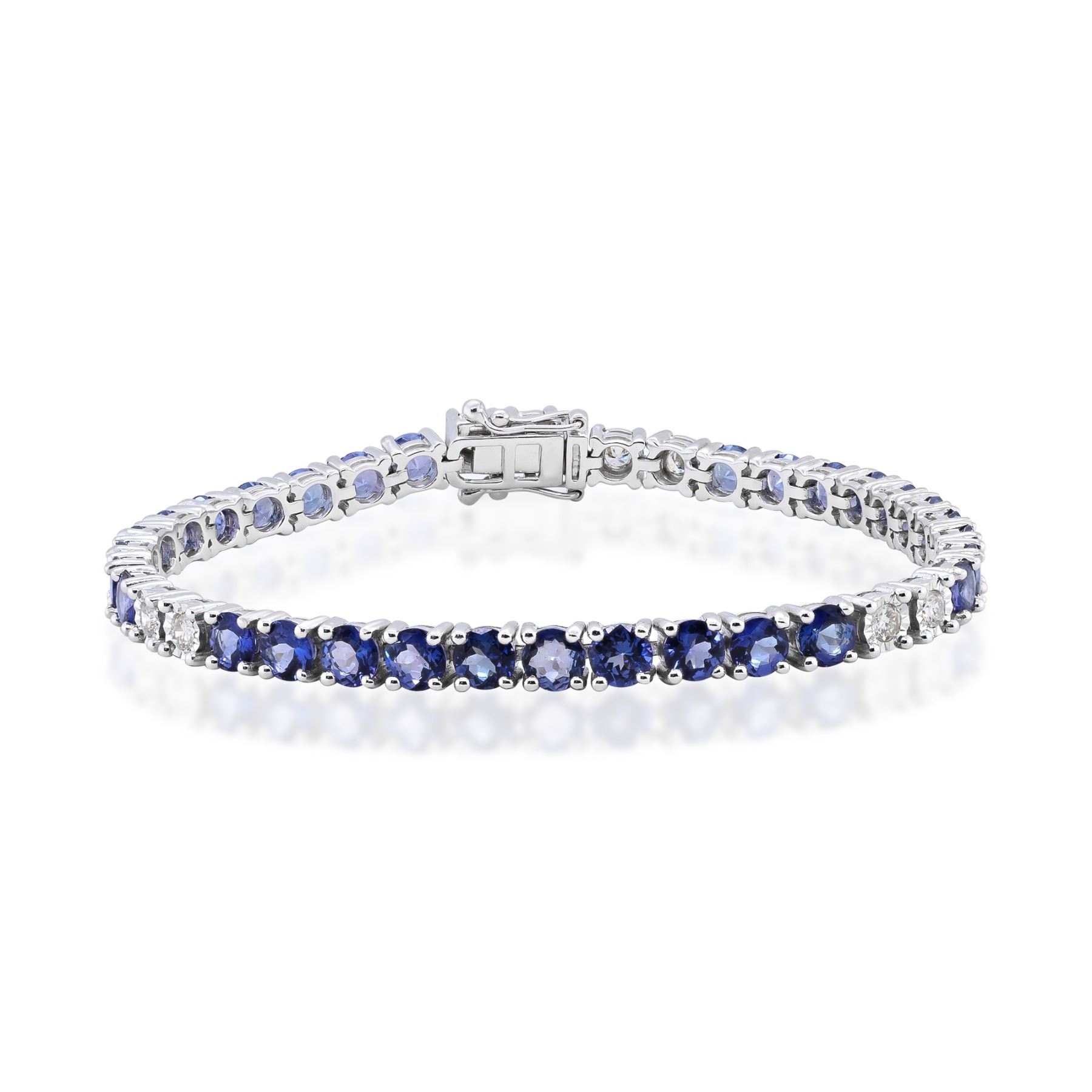 Natural Tanzanite and Diamond Bracelet Set in 14K White Gold
