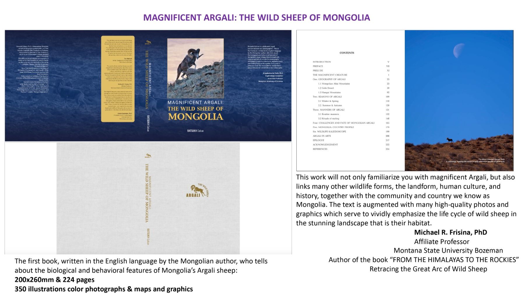 The first book, written in the English language by the Mongolian author, who tells about the biological and behavioral features of Mongolia's Argali Sheep.