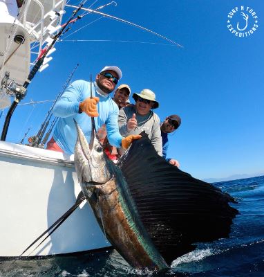 Sailfish, Blue Marlin, Black Marlin, Striped Marlin, Dorado, and Yellowfin Tuna are abundant, and depending on the day, fishing will begin as close as 12 to 15 miles offshore or may extend up to 40 miles if needed to find the best action.