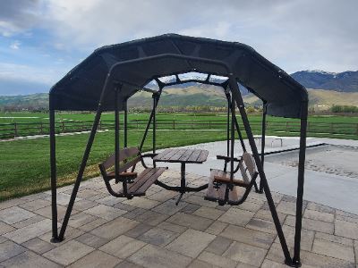Swing N Solar has generously donated a 4 Person Picnic Swing, perfect for turning your outdoor gatherings into memorable events. This picnic swing offers relaxation and fun with its secure pendulum motion, comfortably seating four people. Crafted with precision, it features a heavy-duty frame, a durable powder-coated finish, and imported hardwood seats and tables that can accommodate up to six people. With the convenience of folding footrests and a UV-protected canopy, this swing promises endless hours of enjoyment under the sun or stars. Don't miss the chance to own this fantastic addition to your outdoor entertainment! For more information, contact Kim Taylor by phone at 4802338133 or by email at swingsnsolar@gmail.com. Company’s website: www.swingsnsolar.com