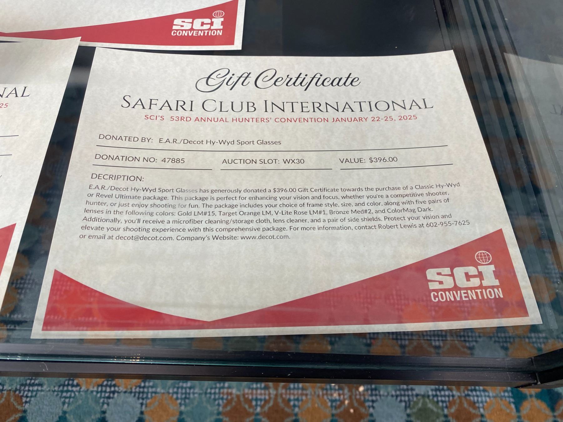 E.A.R./Decot Hy-Wyd Sport Glasses has generously donated a $396.00 Gift Certificate towards the purchase of a Classic Hy-Wyd or Revel Ultimate package. This package is perfect for enhancing your vision and focus, whether you're a competitive shooter, hunter, or just enjoy shooting for fun. The package includes your choice of frame style, size, and color, along with five pairs of lenses in the following colors: Gold LM#15, Target Orange LM, V-Lite Rose LM#1, Bronze Med#2, and ColorMag Dark. Additionally, you'll receive a microfiber cleaning/storage cloth, lens cleaner, and a pair of side shields. Protect your vision and elevate your shooting experience with this comprehensive package. For more information, contact Robert Lewis at 602-955-7625 or email at decot@decot.com. Company’s Website: www.decot.com.