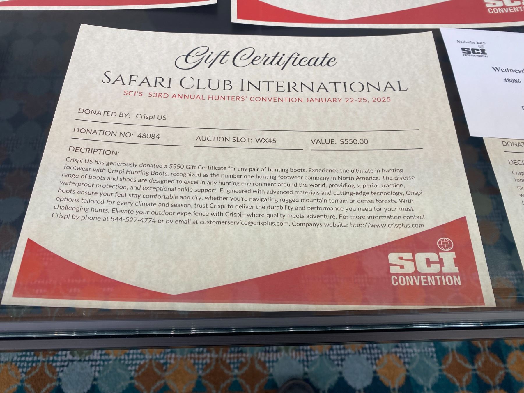 Crispi US has generously donated a $550 Gift Certificate for any pair of hunting boots. Experience the ultimate in hunting footwear with Crispi Hunting Boots, recognized as the number one hunting footwear company in North America. The diverse range of boots and shoes are designed to excel in any hunting environment around the world, providing superior traction, waterproof protection, and exceptional ankle support. Engineered with advanced materials and cutting-edge technology, Crispi boots ensure your feet stay comfortable and dry, whether you're navigating rugged mountain terrain or dense forests. With options tailored for every climate and season, trust Crispi to deliver the durability and performance you need for your most challenging hunts. Elevate your outdoor experience with Crispi—where quality meets adventure. For more information contact Crispi by phone at 844-527-4774 or by email at customerservice@crispius.com. Companys website: http://www.crispius.com