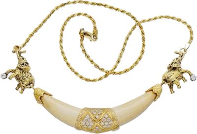 Lot 50TD Appleby's Animals 18KT Yellow Gold Mammoth Ivory and Diamond Elephant Necklace