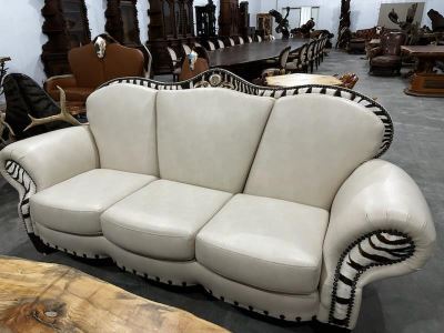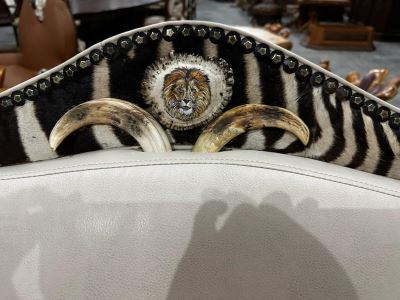 Wild Designs Partners LLLP has generously donated an exquisite custom built "Zambezi" Sofa from the Williams Collection at Wild Designs. This exquisite sofa showcases luxurious ivory leather upholstery, providing a soft and elegant touch. A striking full zebra panel insets the back and armrests, adding a unique and exotic flair. The sofa also features an original oil painting of a majestic lion, set on a rosette and flanked by two intricately crafted warthog ivories, making it a true work of art. Further enhancing its luxurious appeal, the sofa is supported by elegant African zebrawood legs, adding a natural and sophisticated element. Designed and meticulously crafted in the United States, this piece is a testament to the skill and creativity of the artist team at Wild Designs. The "Zambezi" sofa is not just a piece of furniture; it's a statement of style and a celebration of the wild beauty of Africa, perfect for adding a touch of adventure and elegance to any space. For more information, contact Paul Shields by phone at 509-255-6451 or by email at antlerpaul@aol.com. Company's website: www.wildesigns.net.