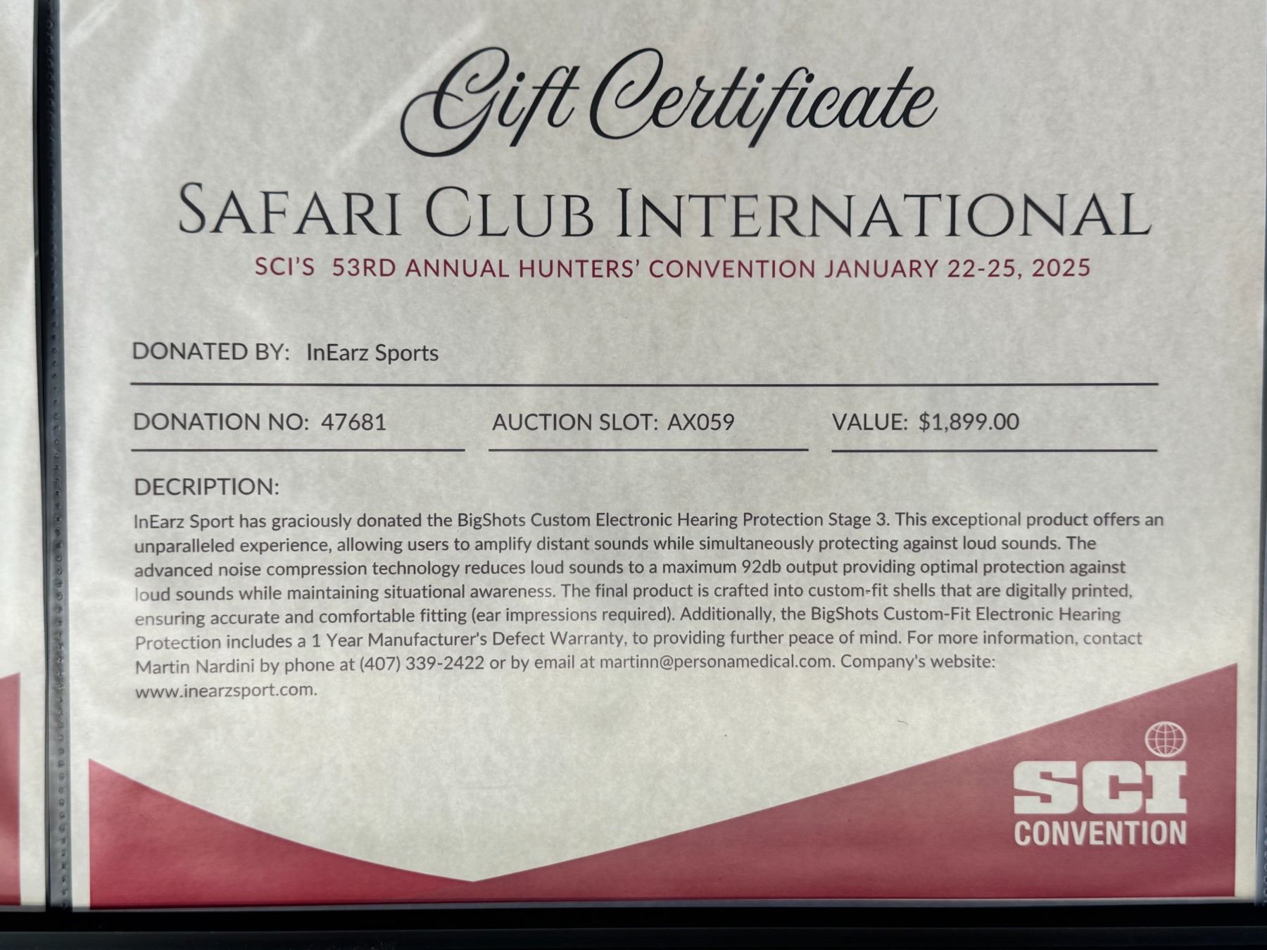 lnEarz Sport has graciously donated the BigShots Custom Electronic Hearing Protection Stage 3. This exceptional product offers an unparalleled experience, allowing users to amplify distant sounds while simultaneously protecting against loud sounds. The advanced noise compression technology reduces loud sounds to a maximum 92db output providing optimal protection against loud sounds while maintaining situational awareness. The final product is crafted into custom-fit shells that are digitally printed, ensuring accurate and comfortable fitting (ear impressions required). Additionally, the BigShots Custom-Fit Electronic Hearing Protection includes a 1 Year Manufacturer's Defect Warranty, to providing further peace of mind. For more information, contact Martin Nardini by phone at (407) 339-2422 or by email at martinn@personamedical.com. Company's website: www.inearzsport.com.