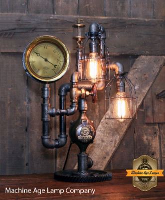 Machine Age Lamps has generously donated a remarkable 6 -7 in. Antique Steam Gauge Lamp from the early 1900s. For collectors seeking an exceptional antique lamp, this exquisite piece is a must-see. Crafted with a solid brass body, brass dial, and nickel finish, it maintains its pristine condition. Notably, it is complemented by antique brass gate valves and an antique brass oiler meticulously mounted atop. The lamp's base holds a distinct identity, comprising two separate gears sourced from a 1930s Farmall tractor. Machine Age Lamps specializes in handcrafting unique steampunk lamps, repurposing salvaged components such as antique steam gauges, agricultural machinery, planes, ships, and other machine-age parts. What sets them apart is their commitment to utilizing exclusively genuine vintage and antique parts, each with its own compelling narrative. The fusion of inviting steampunk illumination and aged metal aesthetics empowers these lamps to metamorphose any space into an ideal ambience. For those in pursuit of antique industrial lighting that seamlessly doubles as captivating artistry, Machine Age Lamps stands as a testament to meticulous artisanship and unwavering attention to detail across their entire collection. Lamp size 16in. W x 28in. T x 12in. D, and weights 25lbs. For more information, contact Shawn Carling by phone at 612-804-2247 or by email shawn@machineagelamps.com. Company’s website: www.machineagelamps.com