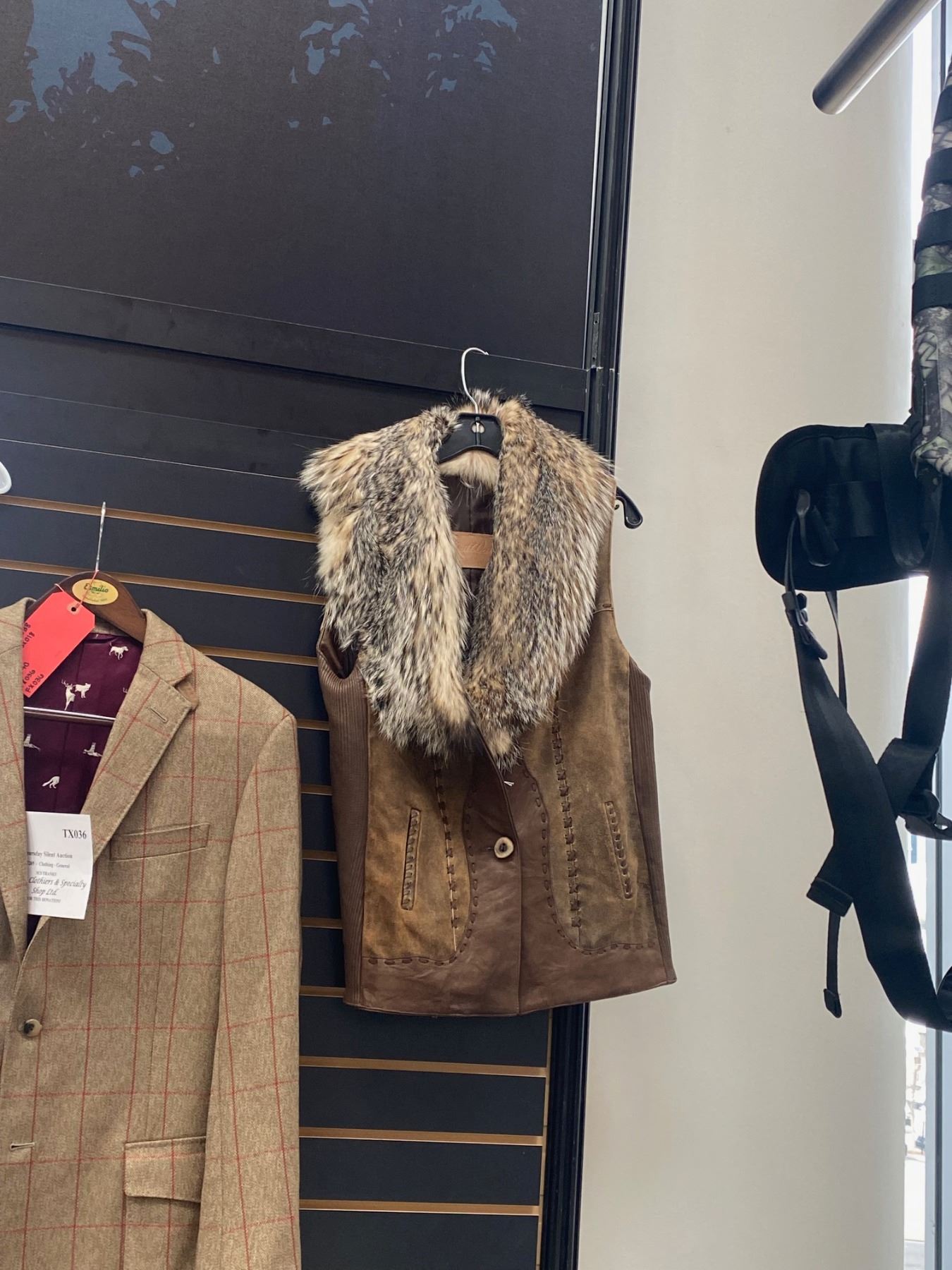 Prepare to be captivated by a true masterpiece generously donated by Brit West. Introducing an Italian leather fur vest with badger fur collar (large), this extraordinary piece exudes timeless elegance and vintage allure. Crafted with fine Italian distressed leather, it offers both style and comfort in any climate. Luxurious fur collar consisting of two full pelts and tailored fit from the Italian lamb shaped sides, makes this vest a testament to meticulous craftsmanship and western style. Brit West's mission to produce quality, classic, and timeless western art shines through in this exceptional garment, crafted with care by skilled US artisans. Embrace this opportunity to own a piece that will be cherished for generations, a symbol of enduring craftsmanship and lasting beauty. Size Large only, non exchangeable. For more information, contact Brit at www.britwest.net