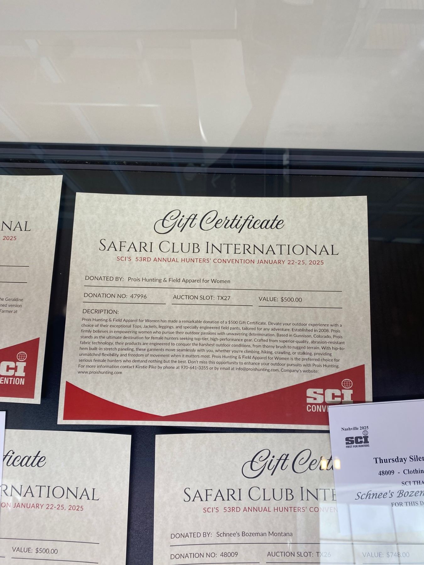 Lot 27TX $500 Gift Certificate to Prois Hunting & Field Apparel for Women