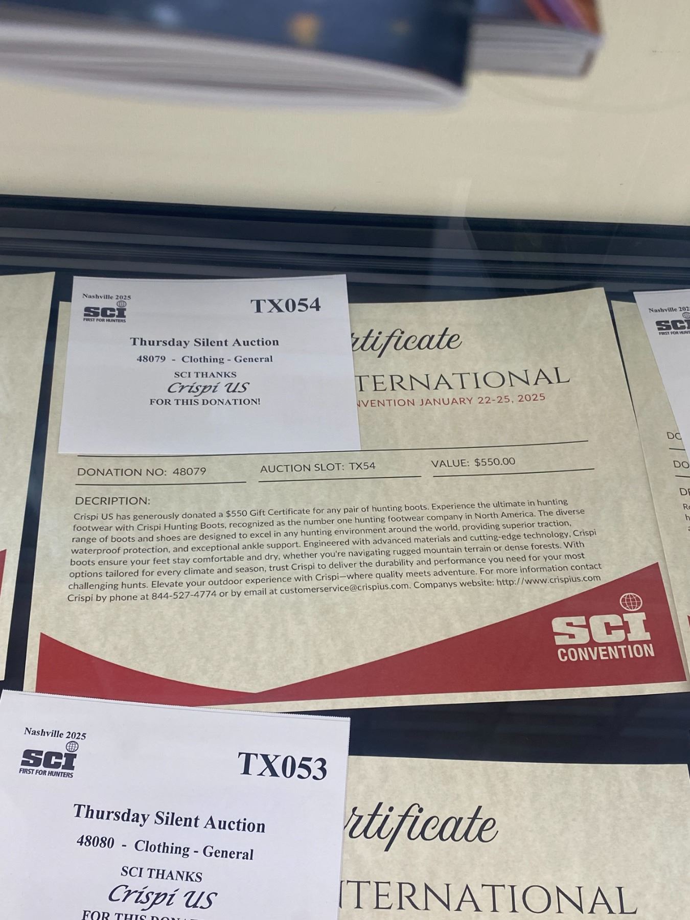 Lot 54TX $550 Crispi Hunting Boots Certificate