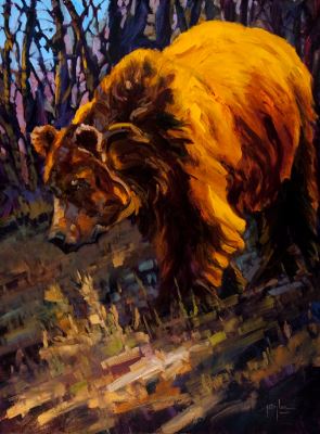 Terry Lee Studio has generously contributed an original oil painting on canvas, titled 'Evening Stroll,' measuring 40 inches by 30 inches, for auction. In this captivating piece, the grizzly is making a final survey of his domain. Terry Lee, known for his mastery of large canvas works, often creating pieces ranging from five to eight feet in length, with some reaching an impressive ten-foot span. His artwork has earned a well-deserved place in galleries across the United States, showcasing his artistic prowess. For more information, contact Terry Lee at 208-659-4182 or by email at terryleestudio@gmail.com. Company's website: www.terryleeart.com.