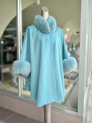 Lot 6FX One Teal-Colored Loro Piana Italian Cashmere Cape with Dyed Norwegian Blue Fox Collar and Cuffs