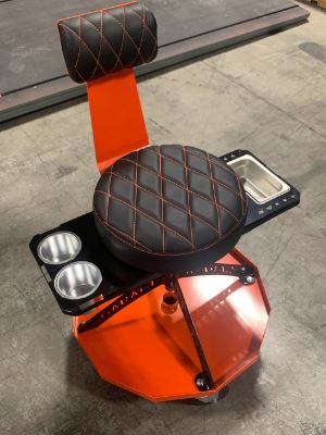 Badass Workbench has generously donated a Badass Garage Stool. Available in Blue, Red, Orange, and Gray. This remarkable stool provides a well-deserved respite for individuals, acknowledging the importance of occasional breaks. Crafted entirely from steel, these stools are a perfect addition to any workshop, garage, or household setting. They offer a comfortable seating experience, boasting a plush seat accompanied by exquisite diamond stitching on both the seat and backrest. Designed with convenience in mind, these stools incorporate an ACME screw mechanism, enabling an impressive 9-inch range of vertical adjustment. With an overall height of 15-24 inches from the floor to the top of the seat, the stools ensure optimal comfort for users. Additionally, the stools feature a greaseable ACME nut, facilitating effortless seat height customization. The Standard Series Garage Stools are supplied with a black vinyl seat, black stool base, a choice of colored steel ring and seat stitching, and four sturdy 4-inch black poly caster wheels, each with a remarkable weight capacity of 350 pounds. Please note that each stool is meticulously handcrafted to order, necessitating a lead time of 4-6 weeks, unless specified otherwise. The location of origin for these exceptional stools is Kearney, NE, USA. For more information, contact Cody Freeze by email sales@badass-workbench.com or by phone at 866-547-1123. Company's website: www.badass-workbench.com