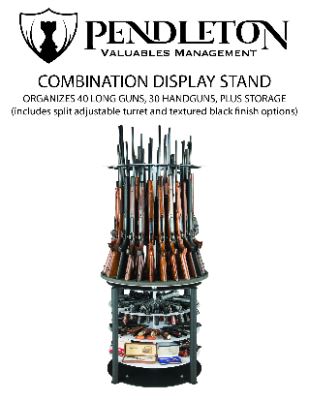 Pendleton Safe Company is delighted to donate a Walk-in Vault Revolving Combination Gun Display. Crafted for walk-in vault rooms, this ultra-sturdy, free-standing display and management system seamlessly merges our innovative long-gun display stand with a custom-configured tiered lower shelving unit. With Pendleton Revolution Technology, the entire system effortlessly rotates 360 degrees, providing convenient access to all your firearms. The exclusive circular turret design proudly showcases up to 40 scoped long-guns side-by-side without any contact, making it a fantastic addition for firearm enthusiasts and collectors. Auction Winner has option to customize shelving. If you place an order for this stand in our booth during the show and win the auction we will refund your purchase price and ship an additional free single plate target with your order. Order must be placed in our booth before the auction winner is announced. Auction winner is responsible for freight. For more information, stop by our booth for more details, contact Pendleton safes at 770-466-6181 or by email at info@pendletonsafes.com. company's website: http://www.pendletonsafes.com.