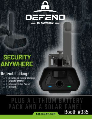 Tactacam has donated the Defend Package, a robust cellular security solution designed for outdoor surveillance and property protection whenever you need it and wherever you need it. This comprehensive package features the Defend Cellular Security Camera, which offers remote monitoring capabilities and real-time alerts. No wifi or wall power needed. The package also includes a Lithium Battery Cartridge for long-lasting power, a Defend Solar Panel for sustainable energy, and an SD Card for local storage of captured footage. This combination of advanced technology and essential accessories provides users with a reliable, easy-to-deploy security system for various outdoor applications to provide protection to what’s important to them. Whether that’s their home, RV, Boat, Construction Site, or Farm, Defend is the solution to all security needs. The Defend Package showcases Tactacam’s commitment to innovative outdoor solutions, offering peace of mind through cutting-edge cellular technology. For more information, please contact Mersadie Gibson at mgibson@tactacam.com or visit www.tactacam.com