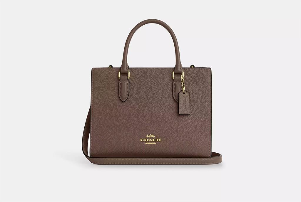 Coach Maggie Small Tote Bag- Pebbled Leather/Gold/Dark Stone with a Matching Snap Wallet
