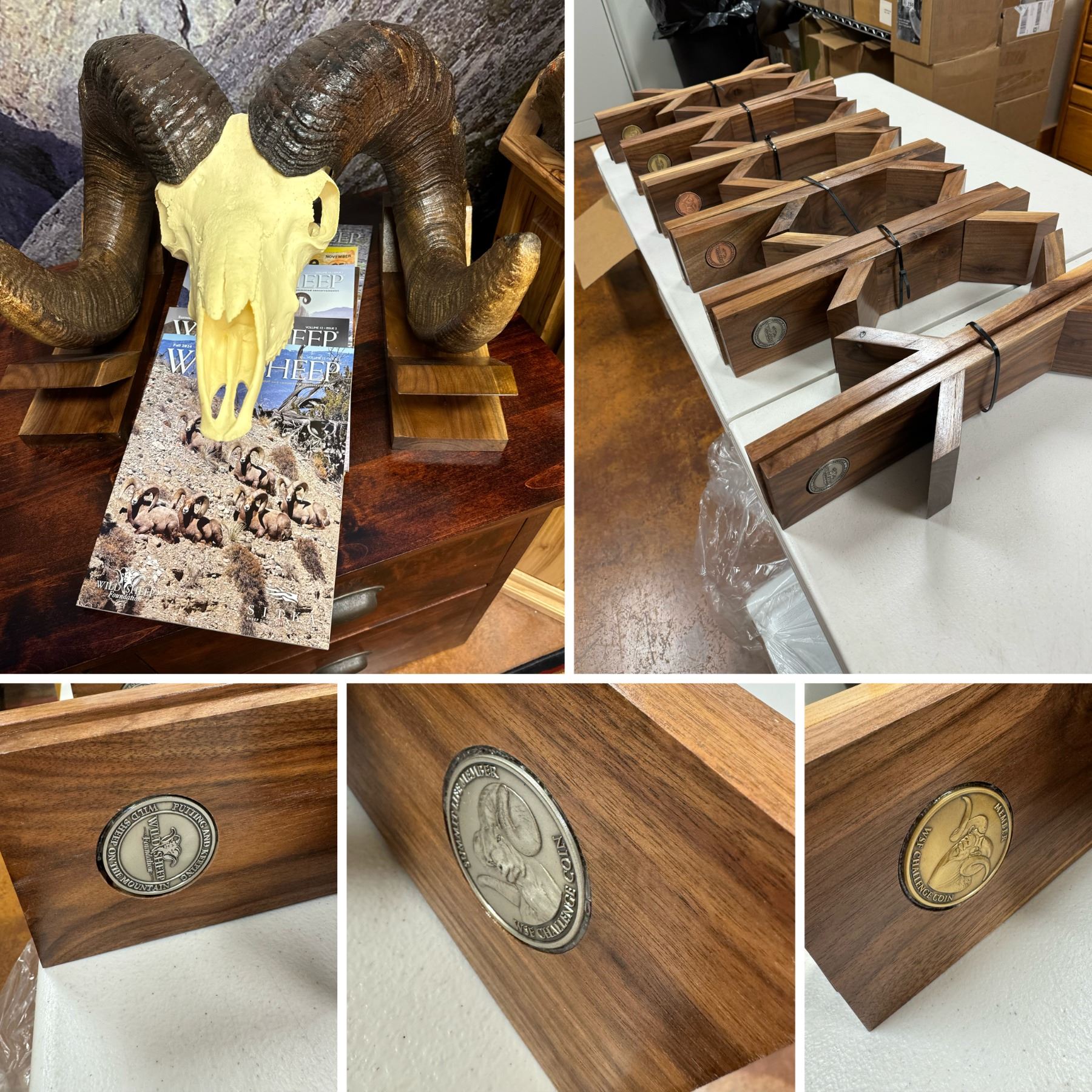 Lot 7 CUSTOM HORN CRADLE WITH WSF SUMMIT LIFE MEMBER CHALLENGE COIN