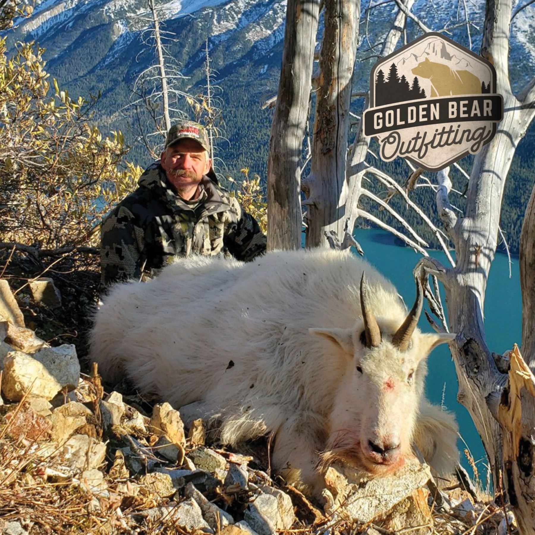 Enjoy a 12-day hunt for mountain goat with Golden Bear Outfitting.
