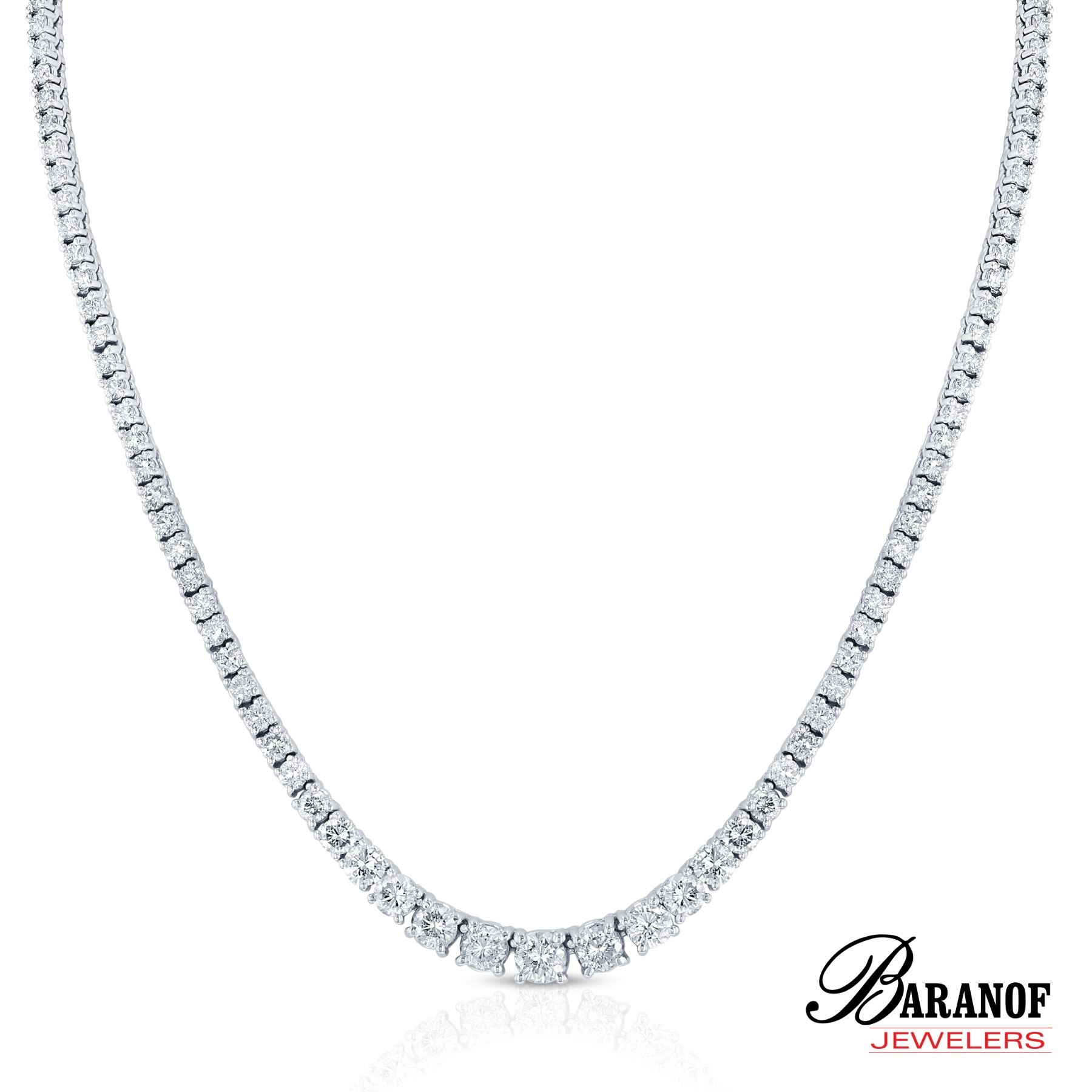 Natural diamond Riviera tennis necklace set in 18 karat white gold.