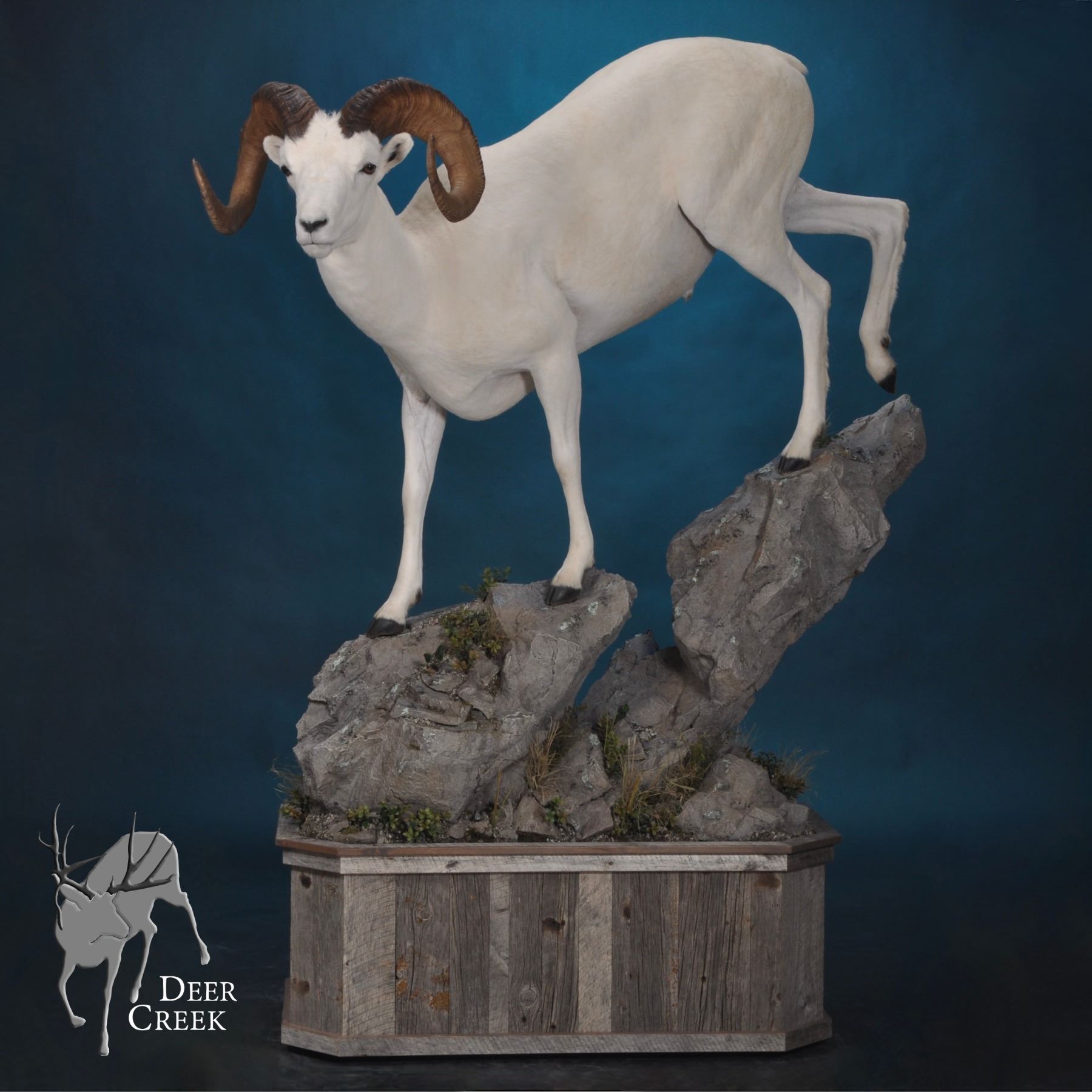This donation includes taxidermy for 1 life-size (full body) North American Wild Sheep mount with a standard pose, appropriate habitat, and wood base.